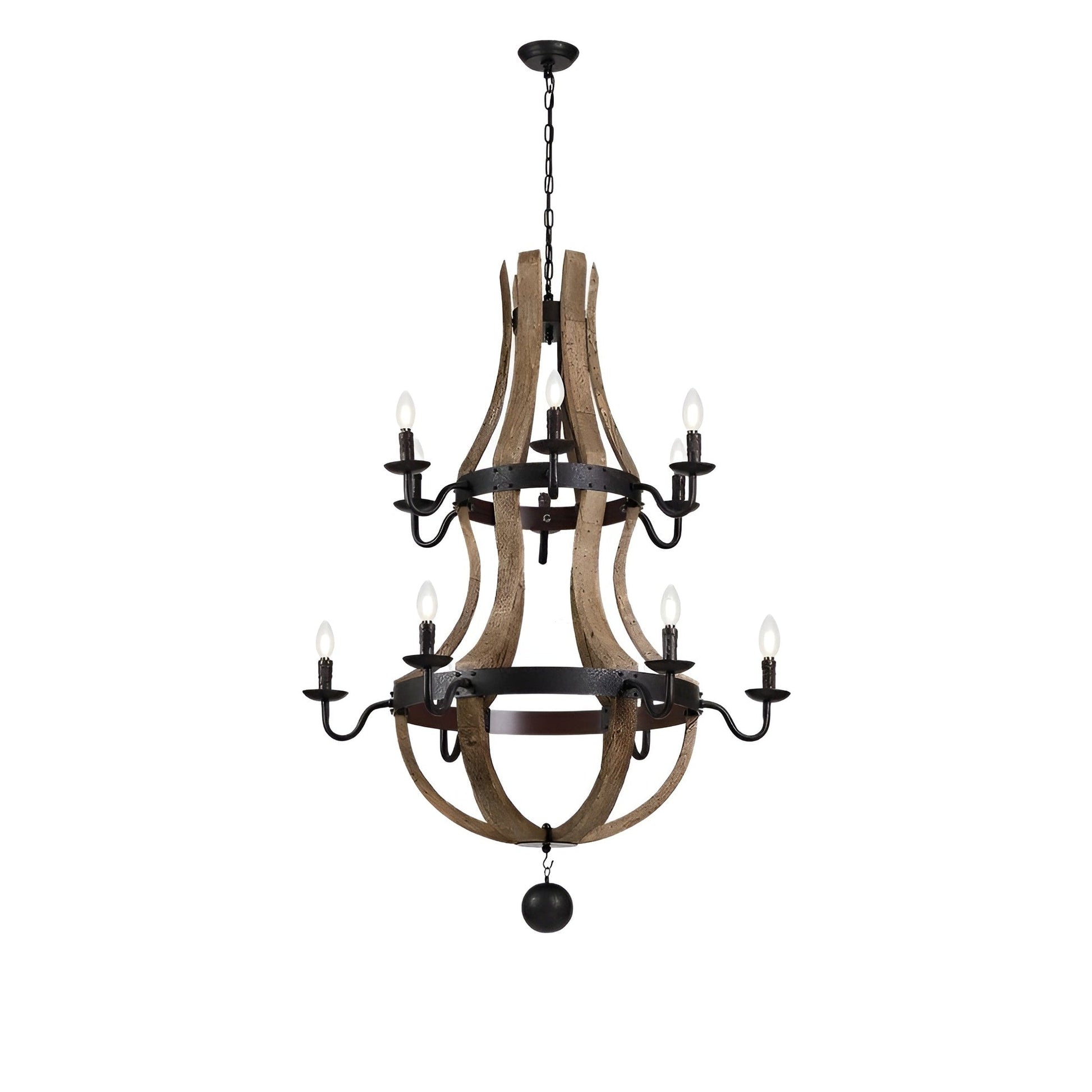 Luminaire à 12 lumières, style campagne française, à deux niveaux, en forme de tonneau à vin