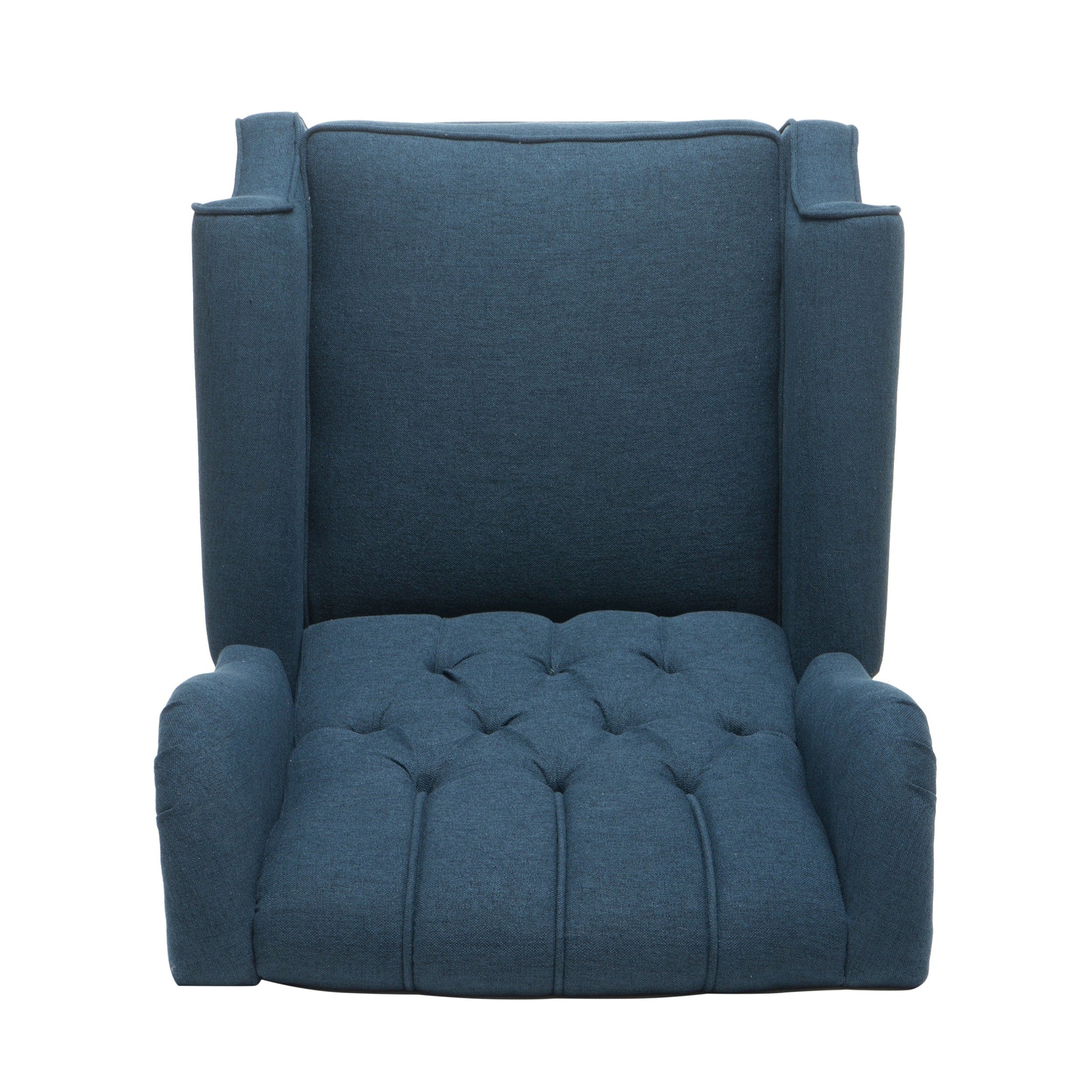 Relax in style and comfort with the Walter Tufted Fabric Recliners, a set of two chairs that exude both elegance and sophistication. These recliners are designed with a push-back recline mechanism and an adjustable footrest, making it easy to unwind after a long day. The contemporary design features smooth upholstery and tonal piping with a minimalistic yet refined structure that emphasizes both comfort and functionality. The button-tufted stitching adds an extra touch of sophistication to the backrest, while nailhead accents along the edges and rolled recessed arms complete the refined contemporary look. Choose from a variety of upholstery colors to perfectly match your decor style.