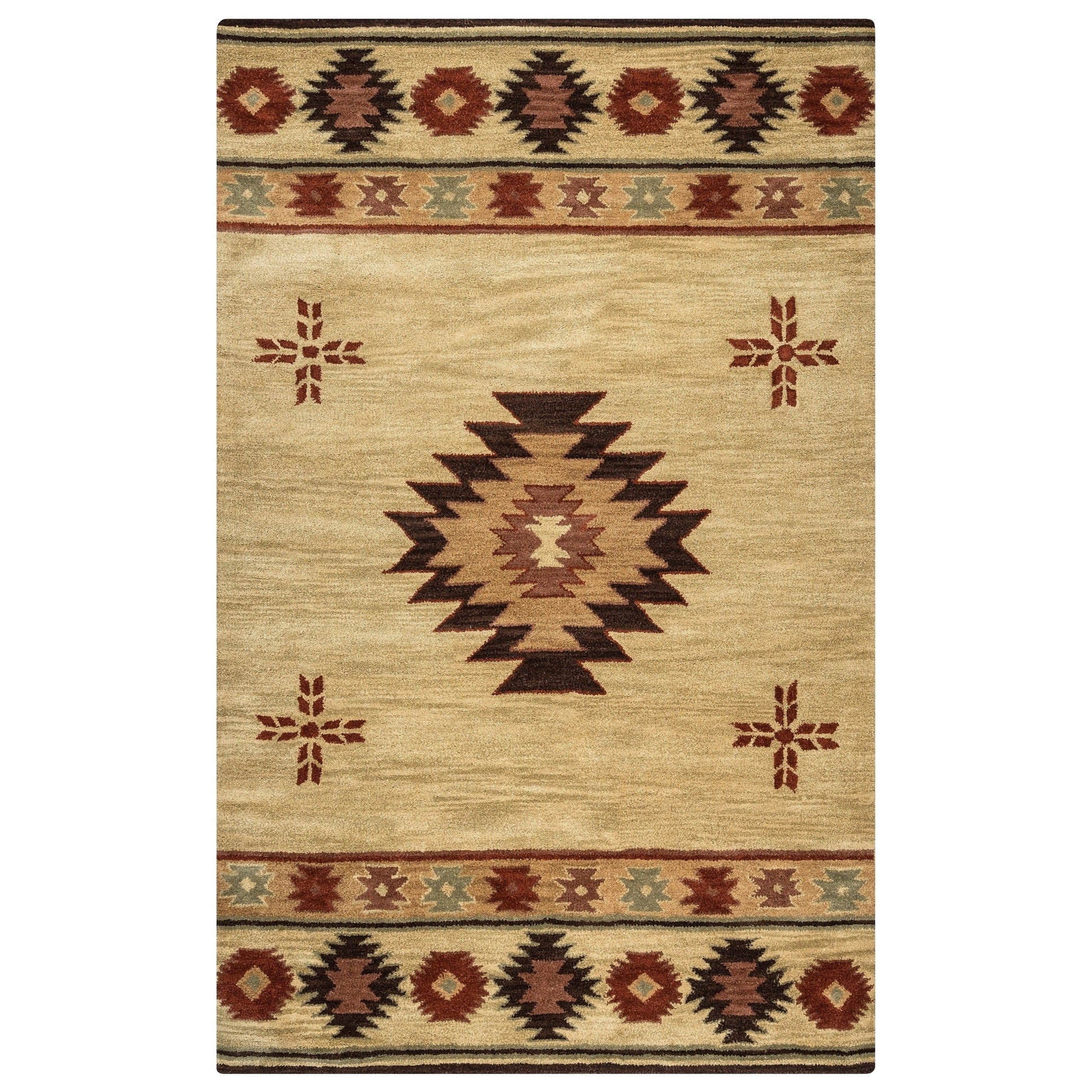 Add a touch of Native American elegance to your home decor with Alora Decor's Ryder Southwestern Hand-tufted Wool Rug. Featuring a stylish Southwestern and lodge-style pattern, this charming rug is available in three beautiful colors that will bring life to any space. Hand-tufted with 100-percent wool and serged edges, this rug is designed to last a long time. Perfect for indoor use, it has a 0.60-inch pile height and features cotton and canvas backing with latex.
