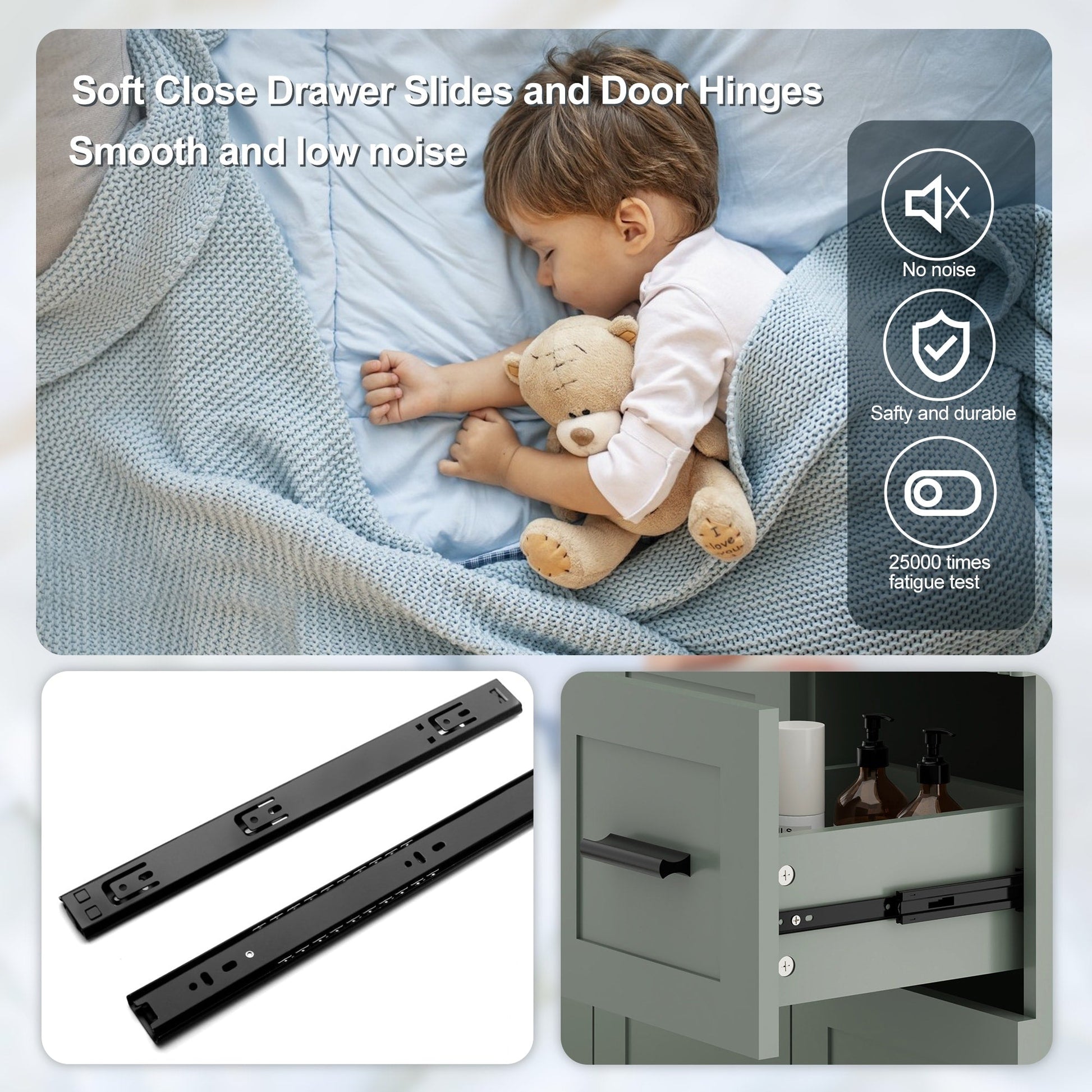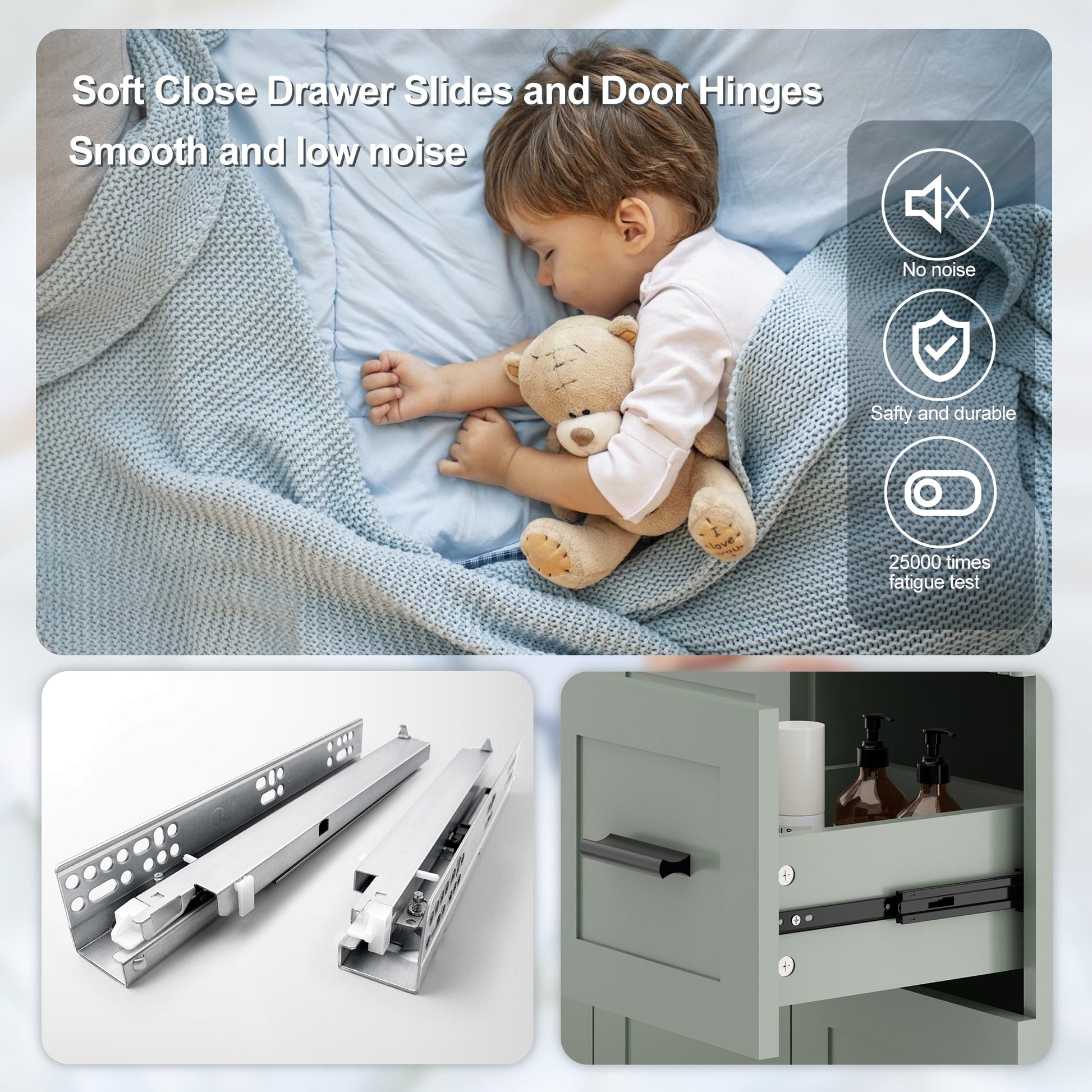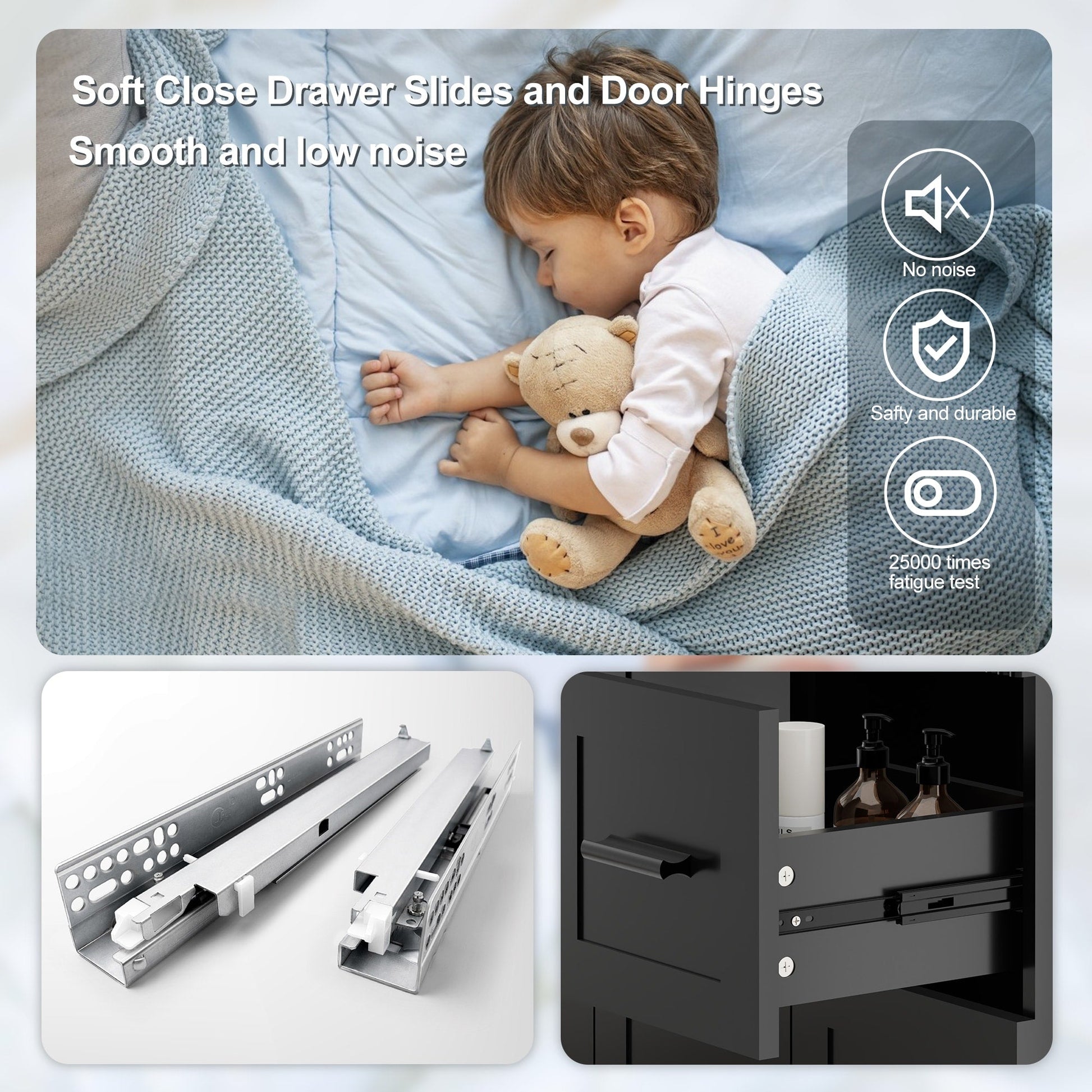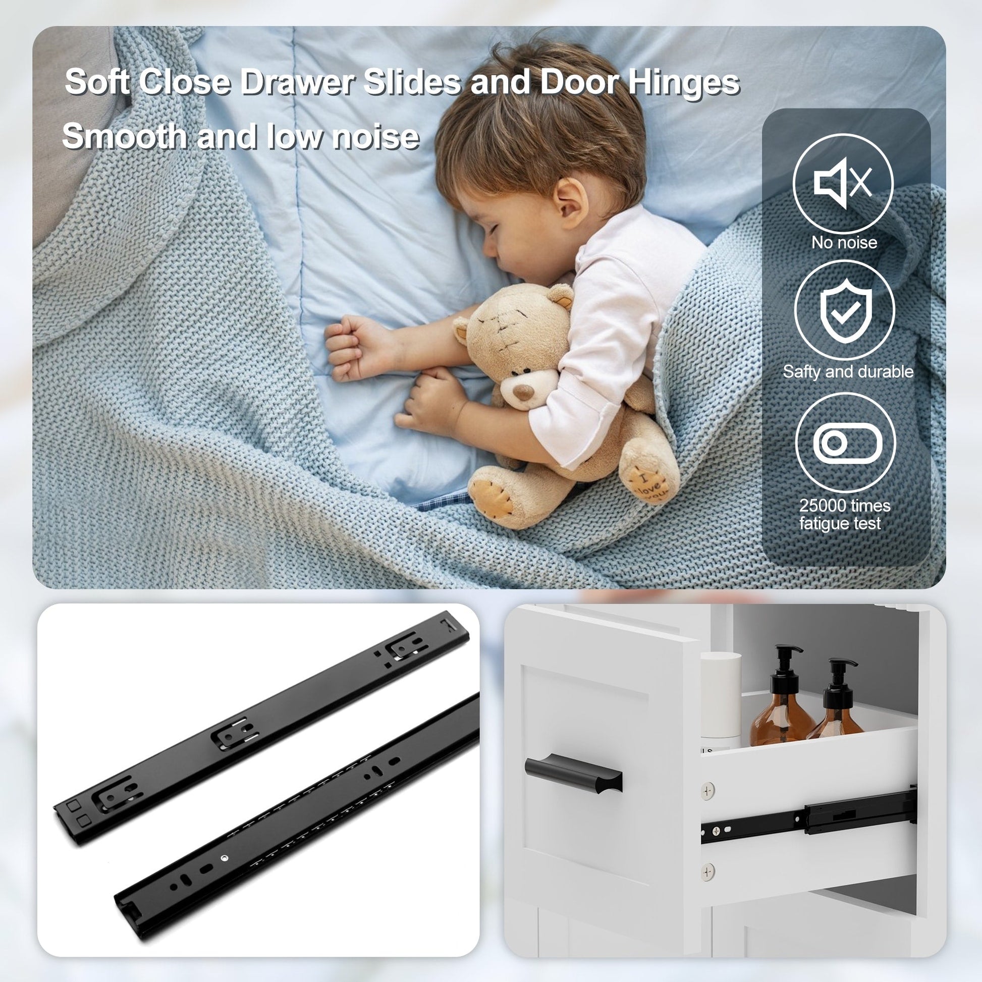 Bacs à tiroirs à fermeture amortie haut de gamme : les coulisses de montage inférieur en acier inoxydable (testées à 25 000 cycles) garantissent un fonctionnement silencieux et fluide. 2 grands tiroirs + étagère réglable permettent d'organiser les articles de toilette sans effort.