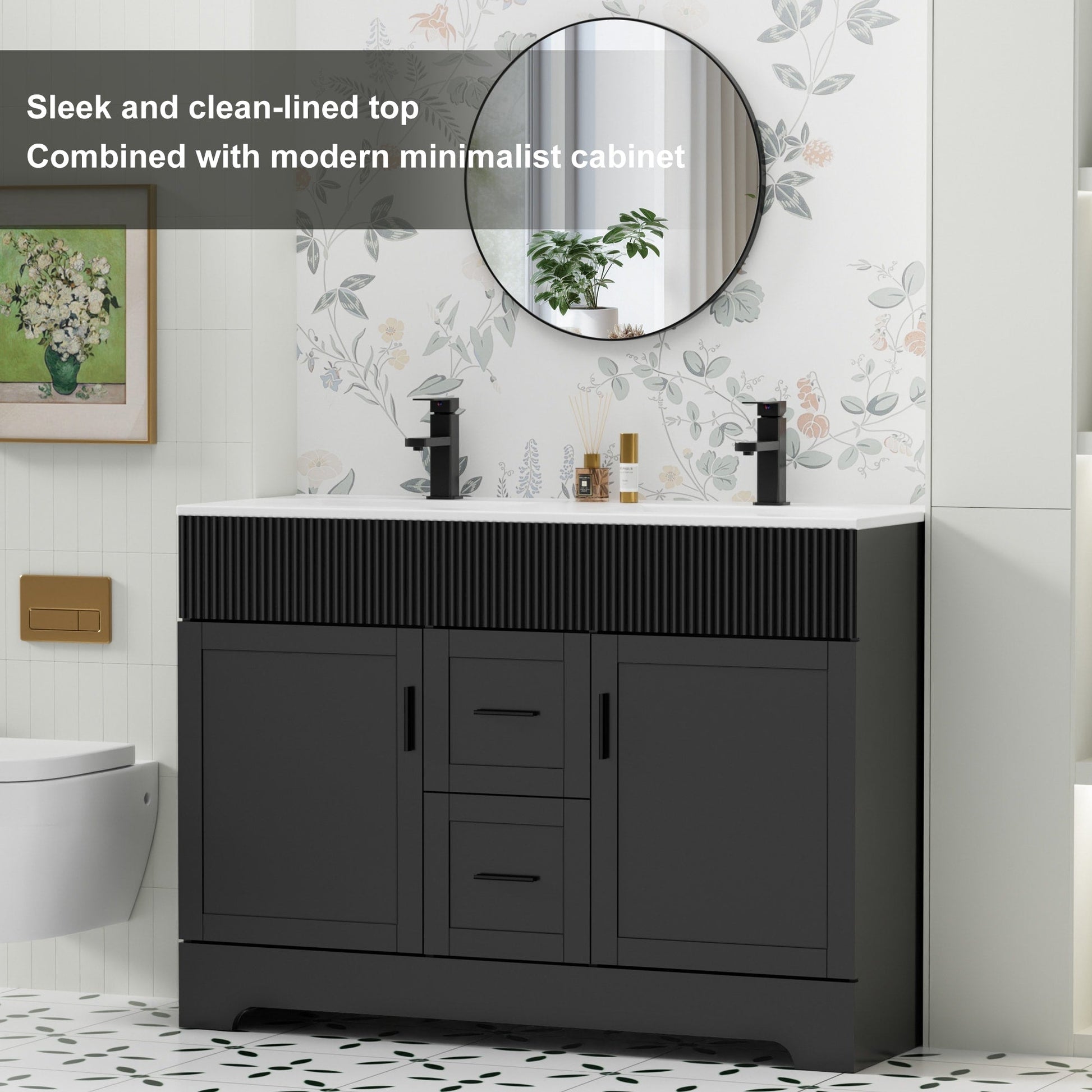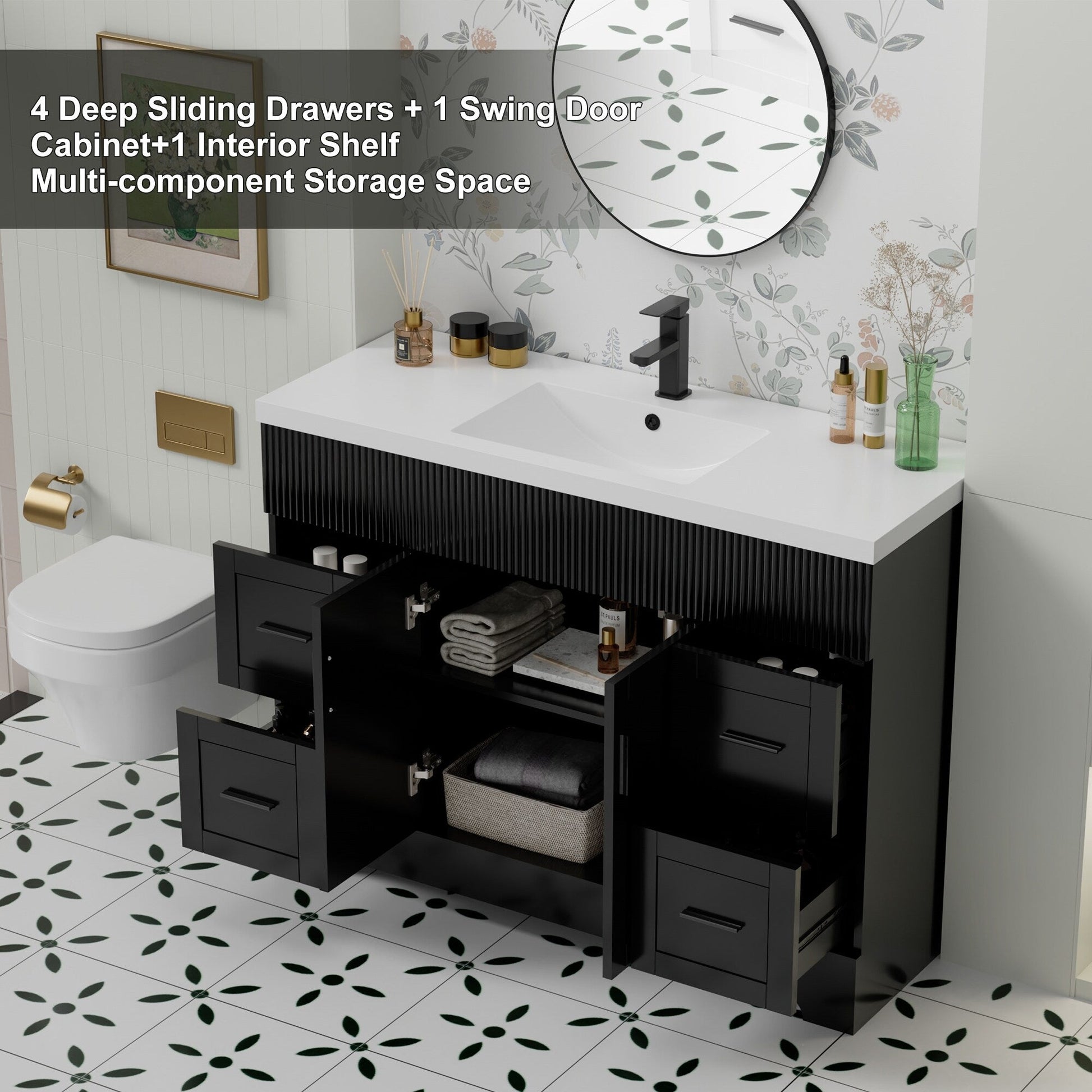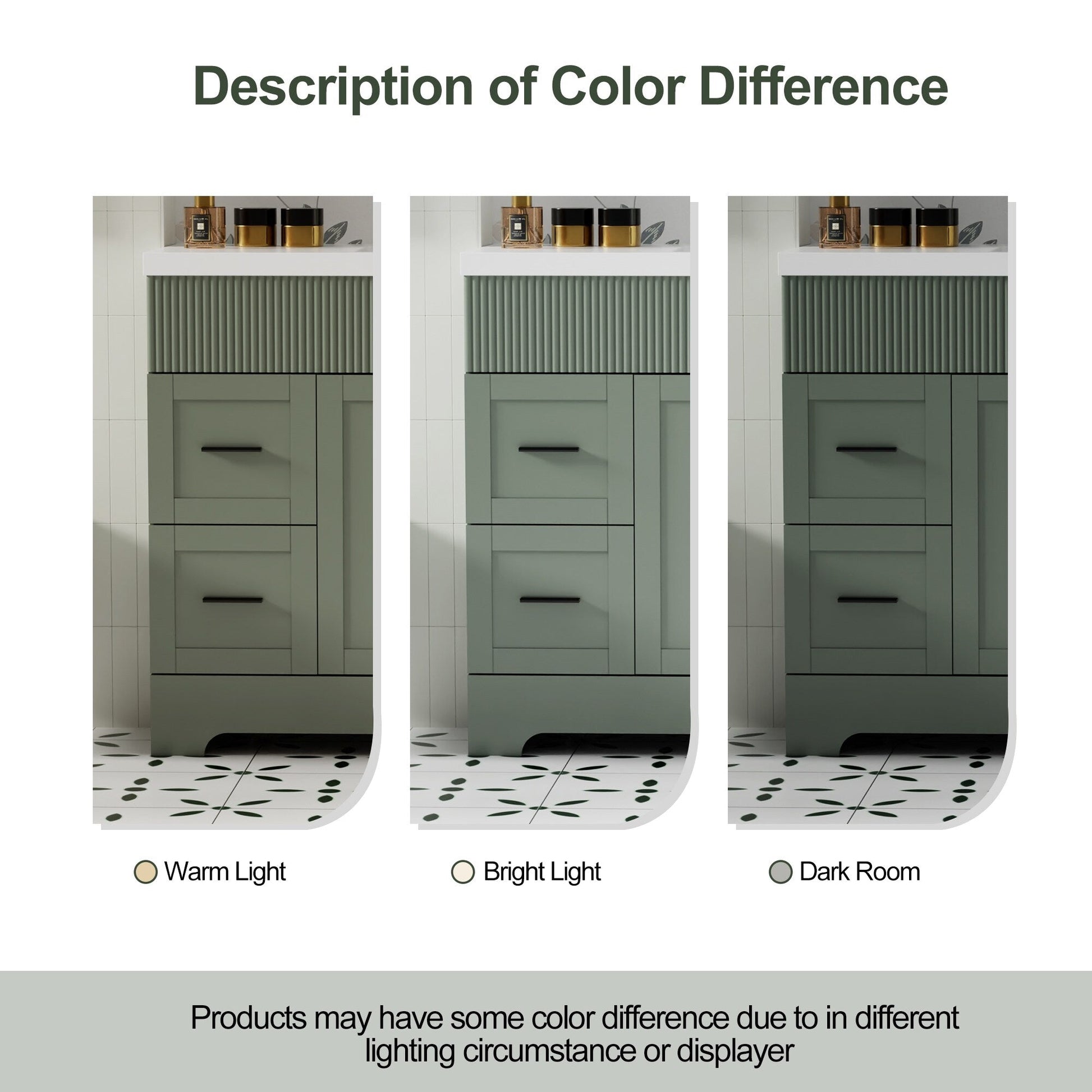 Rehaussez le style de votre salle de bain avec cet ensemble de meuble-lavabo complet doté de lignes ondulées attrayantes. Disponible en 3 dimensions polyvalentes (30", 36", 48") et 3 couleurs tendance (blanc, vert, noir), ce meuble-lavabo indépendant offre un style contemporain et un espace de rangement exceptionnel. Sa construction en bois de première qualité assure une grande durabilité, tandis que le lavabo en céramique inclus (30"/36") et le lavabo en résine SMC légère (48") sont faciles à entretenir.