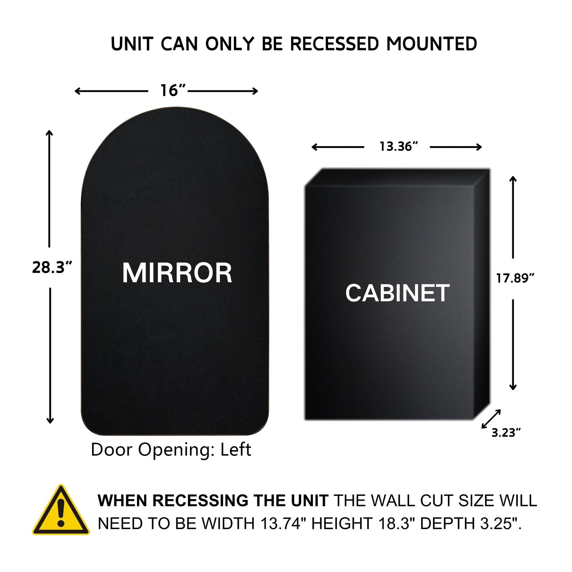 • Armoires à médicaments à cadre métallique et porte arquée : Porte métallique haut de gamme avec finition noire mate. La porte est dotée de charnières à fermeture automatique.