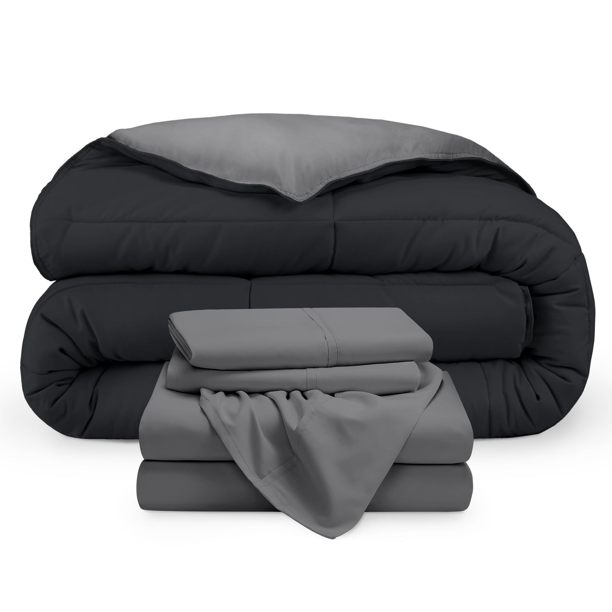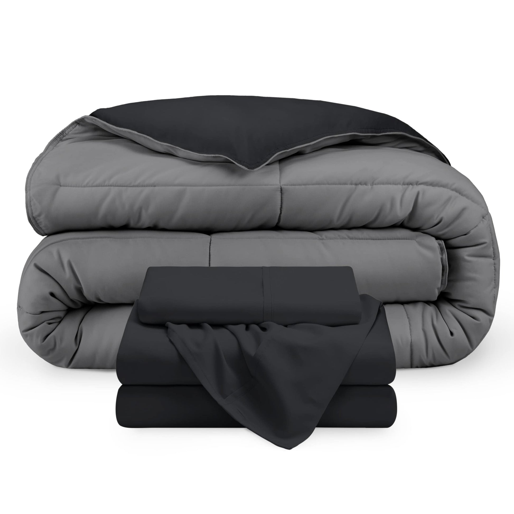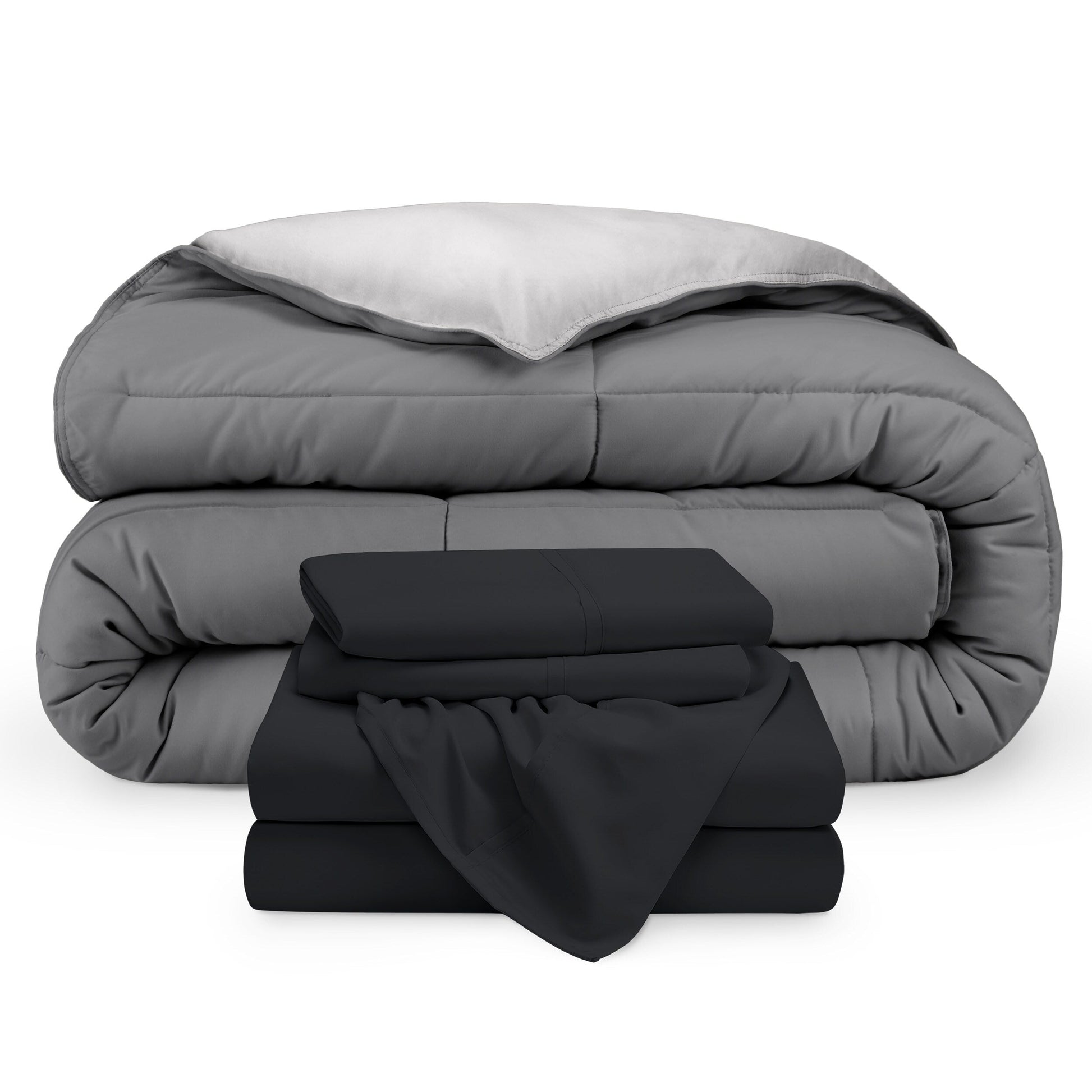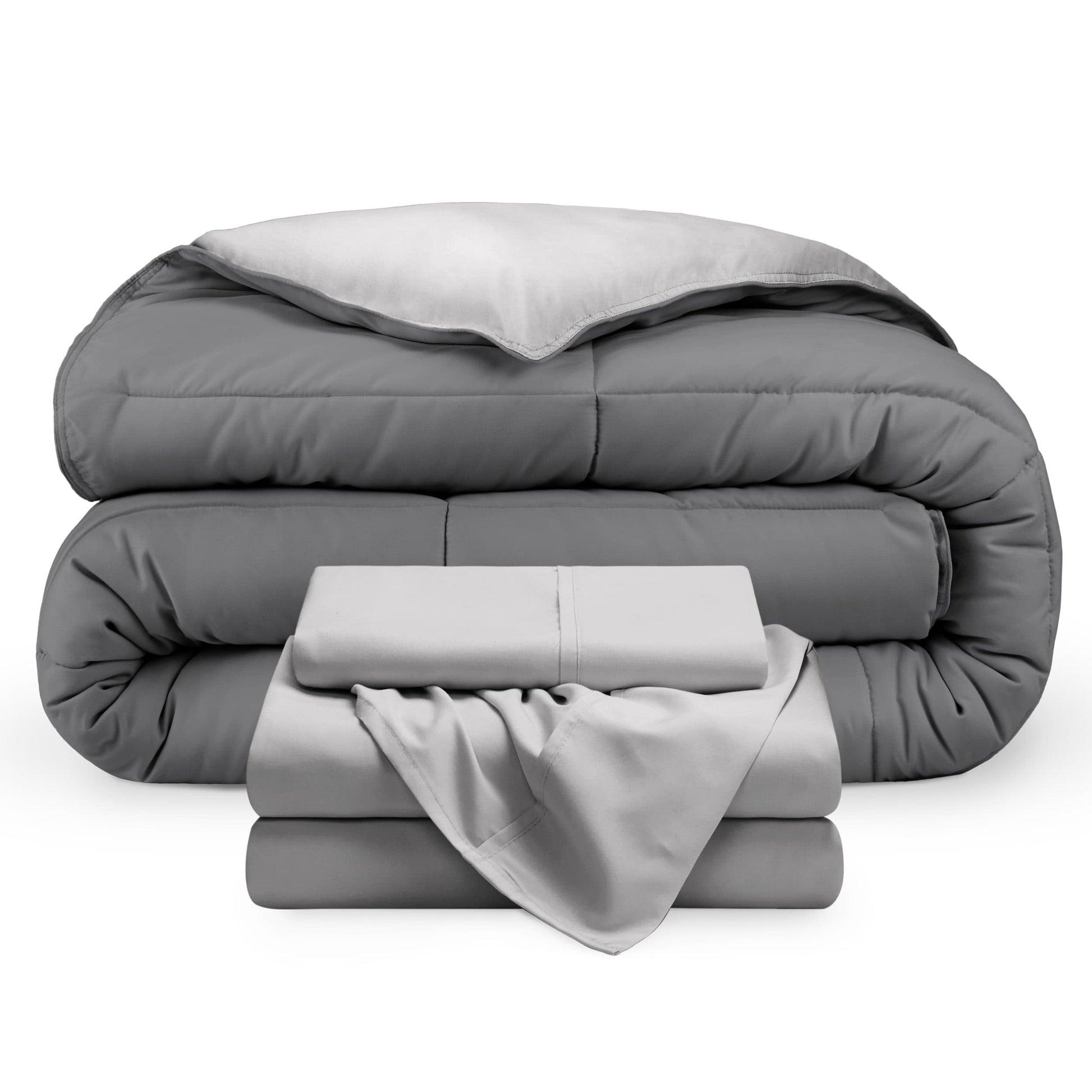 Upgrade your bedding game with the Bare Home Down Alternative Reversible Bed-in-a-Bag. This bedding set includes a reversible comforter and a microfiber sheet set. Made with 100% hydro-brushed microfiber and filled with goose down alternative polyfiber, the comforter is breathable, hypoallergenic, and double brushed for extra softness.