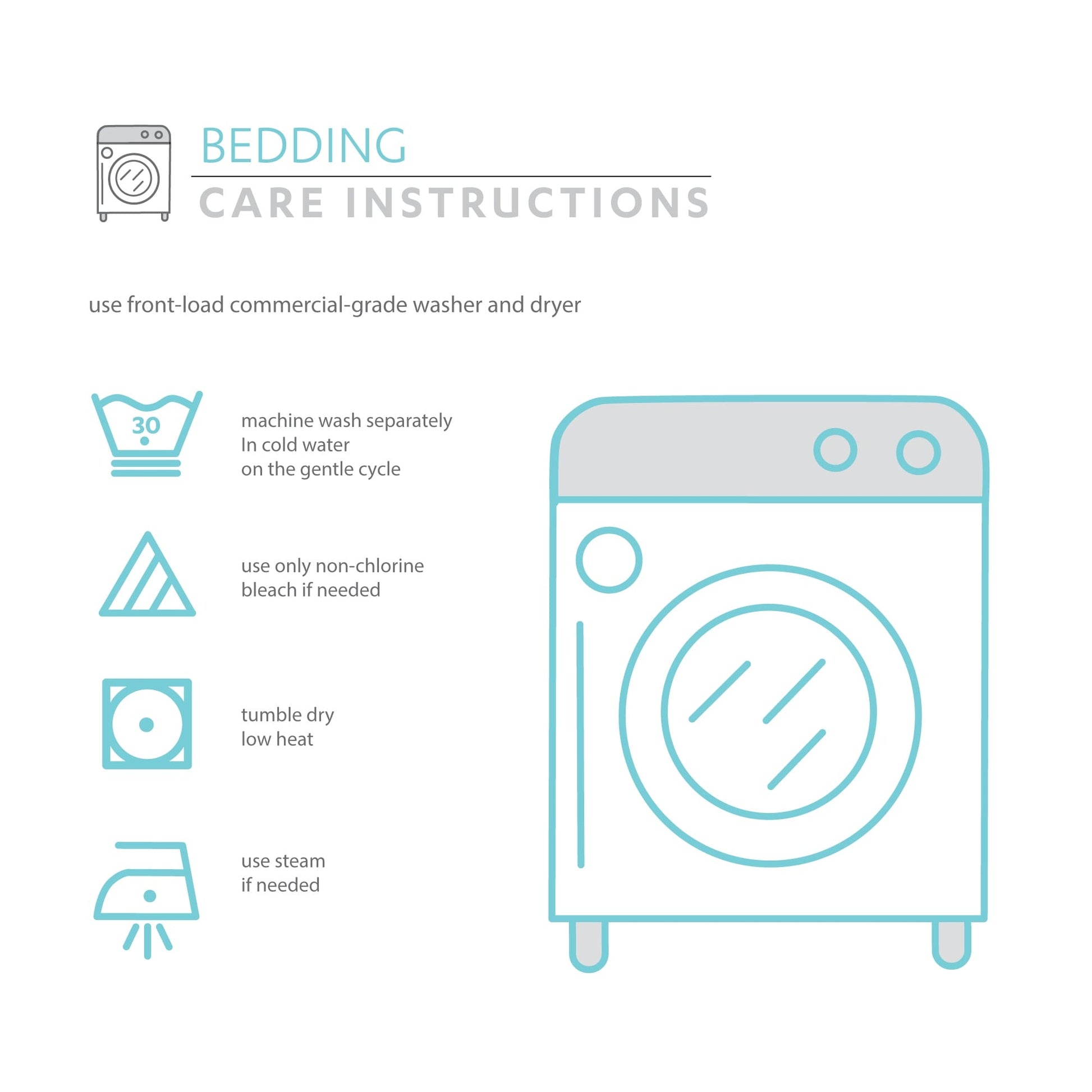 • Use Front-Load Commercial Grade Washer And Dryer. Machine Wash Separately in Cold Water on the Gentle Cycle. Use Only Non-Chlorine Bleach If Needed.