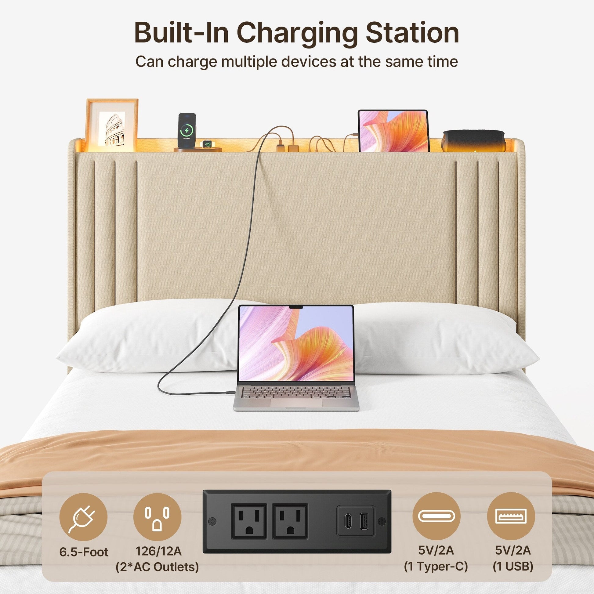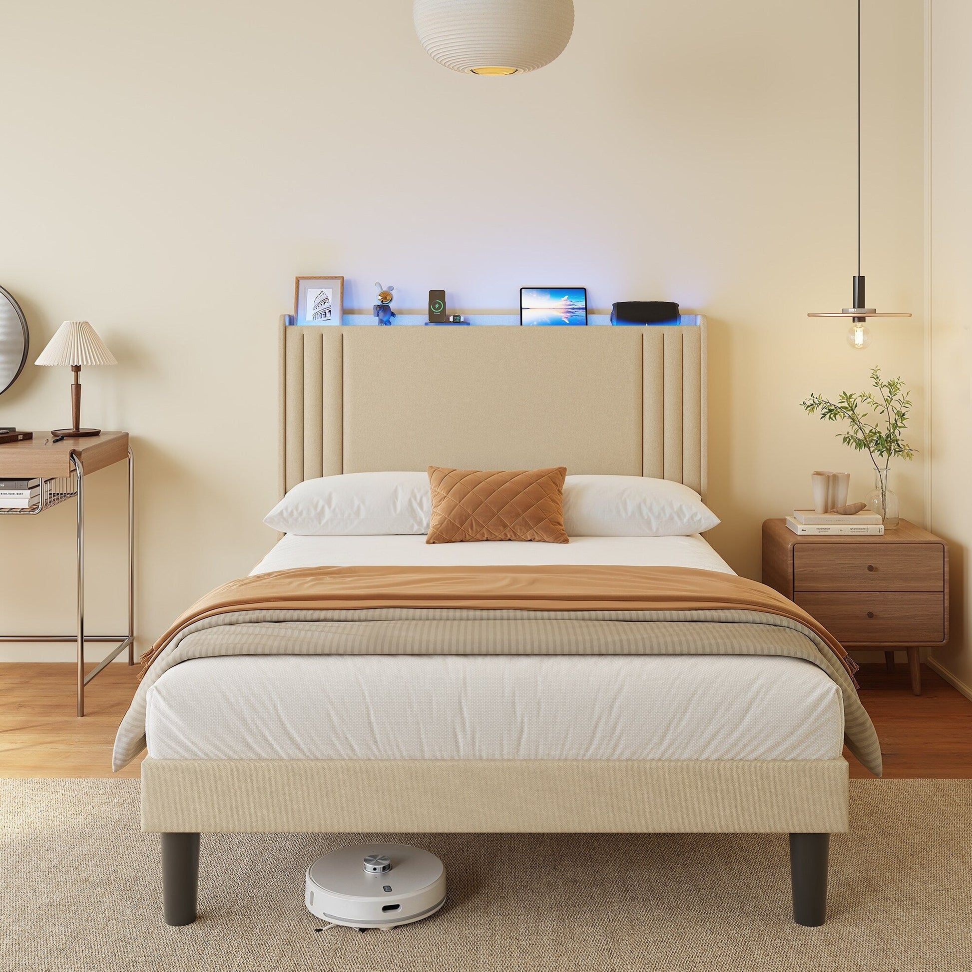 Queen/ Full Vertical Channels Upholstered Bed...