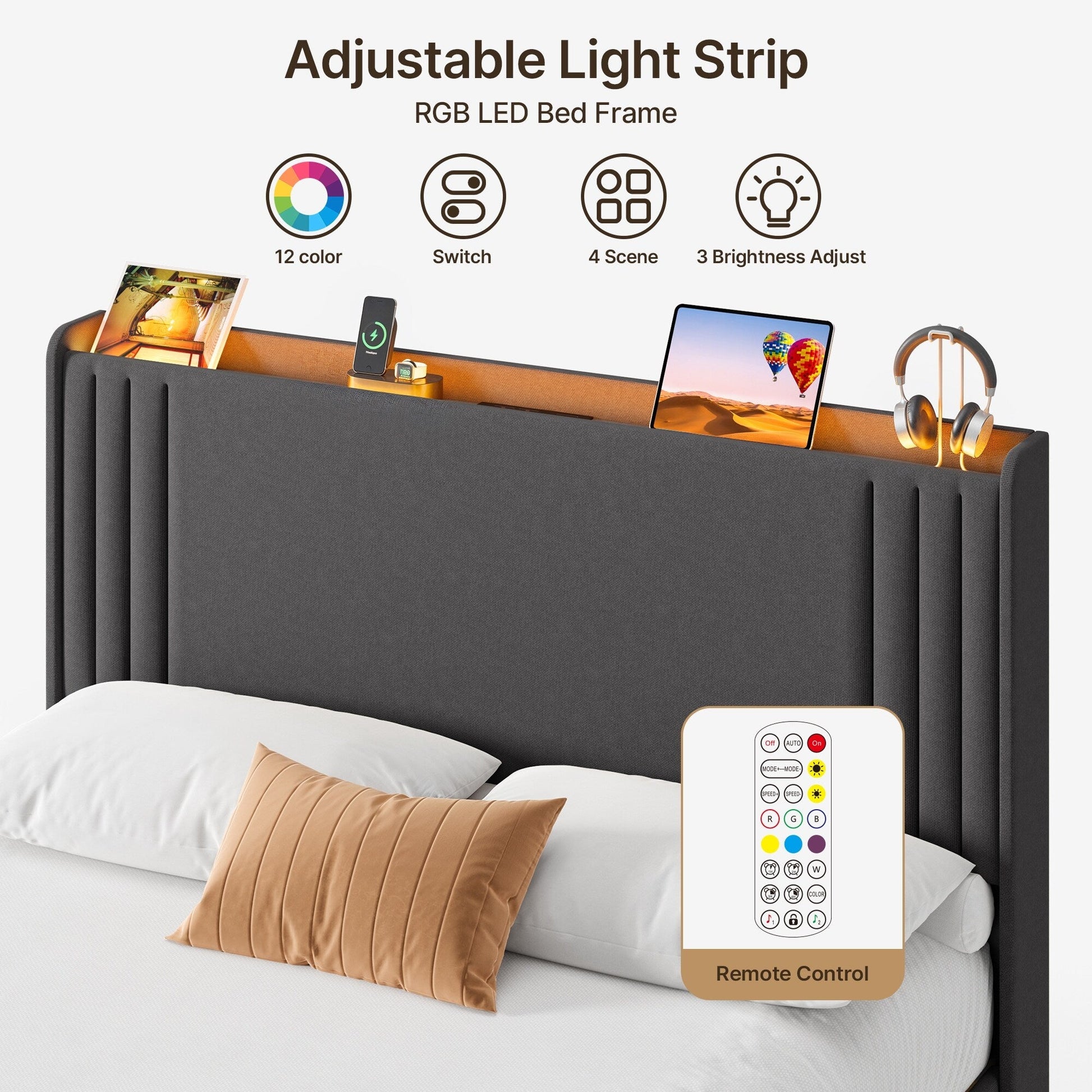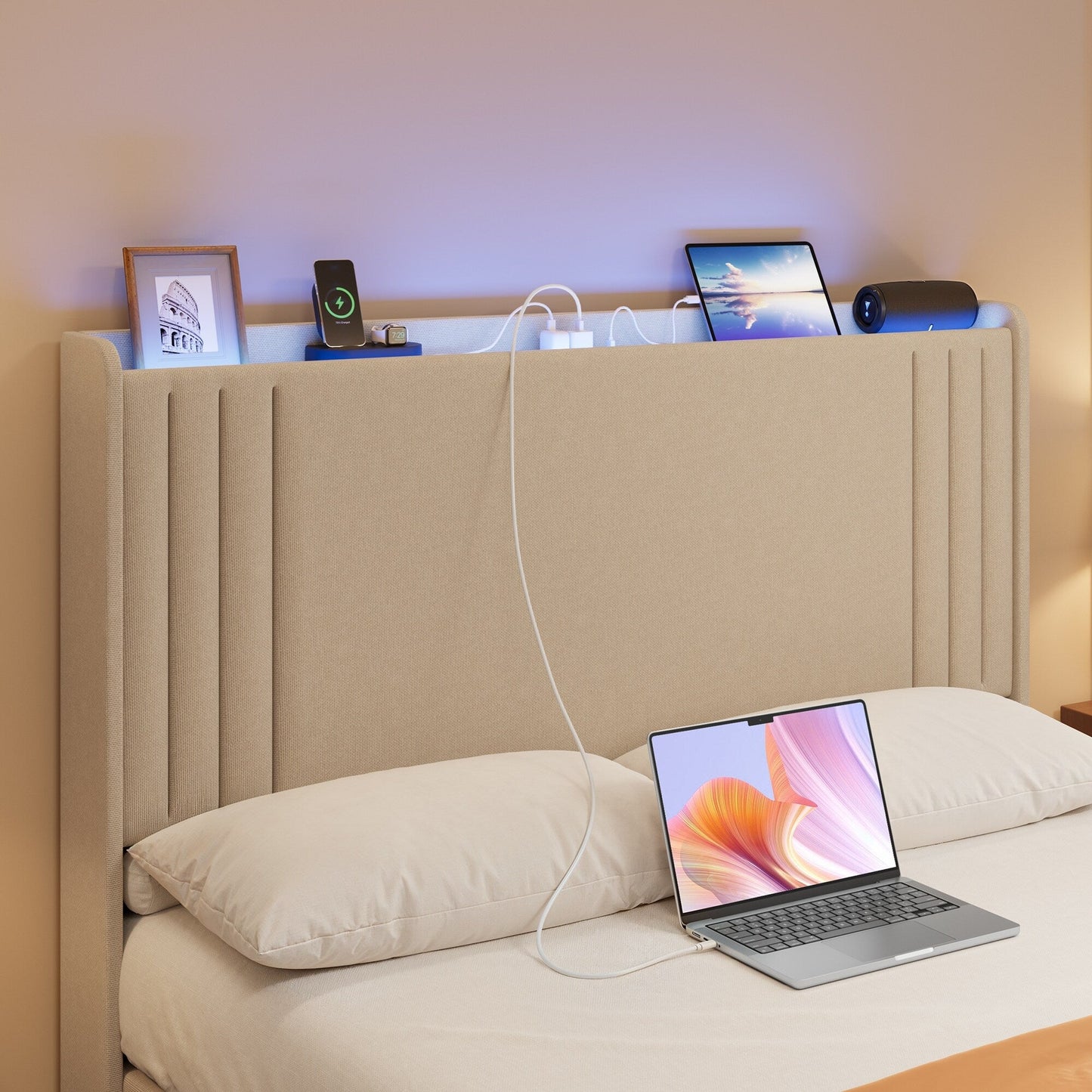 Queen/ Full Vertical Channels Upholstered Bed with Wingback...
