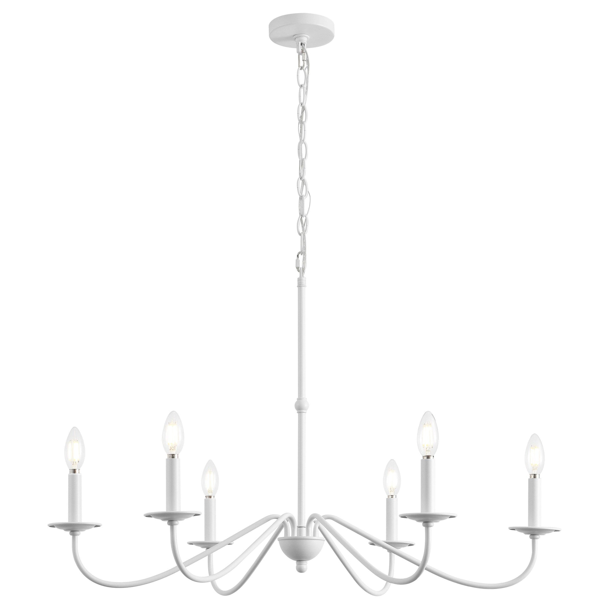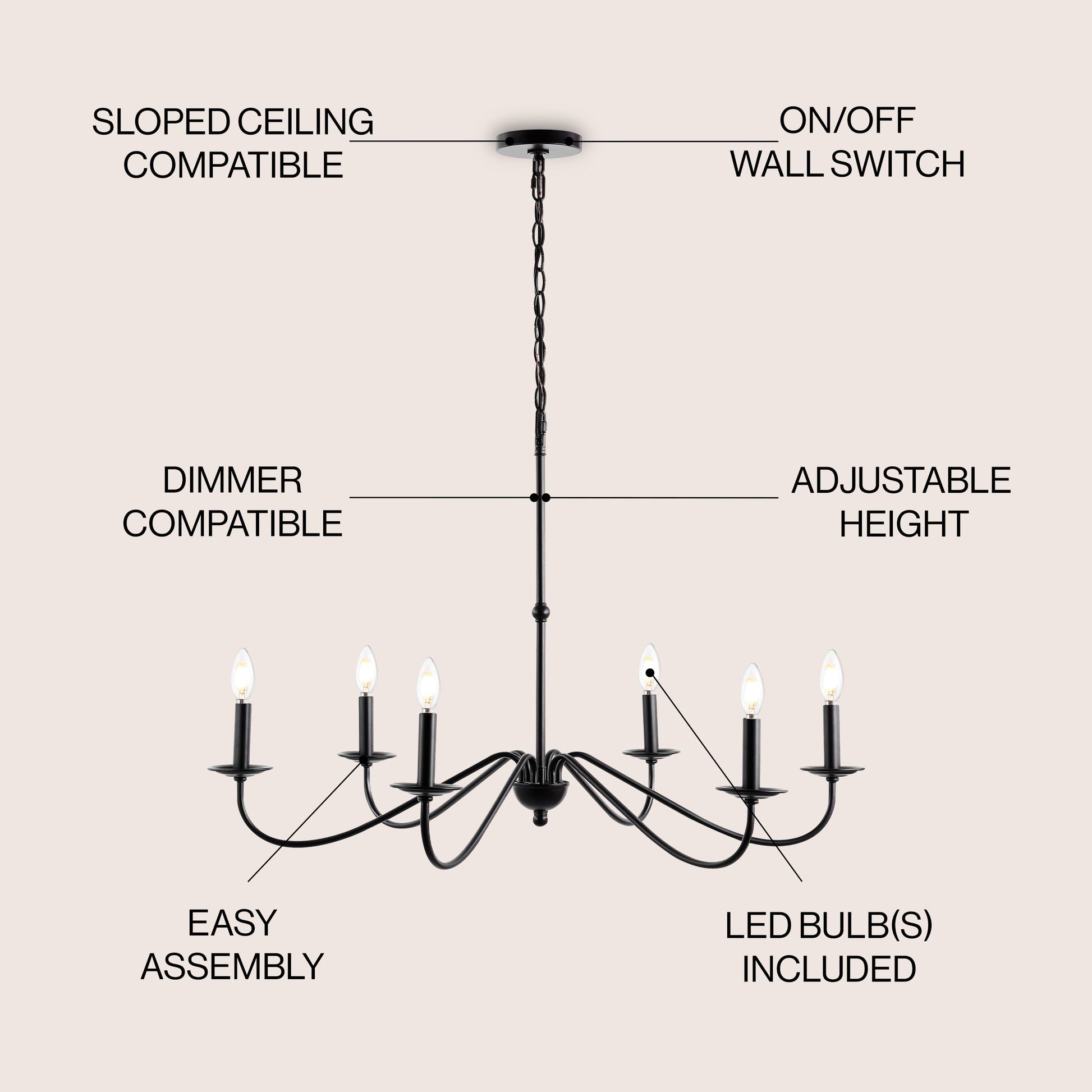 Inspiré des lustres historiques en fer forgé, notre design rustique à 6 lumières présente une finition de qualité. Parfaitement dimensionné pour une salle à manger de style ferme, un hall d'entrée haut ou une grande pièce avec des plafonds hauts, notre lustre mesure un peu moins de 35 pieds de large et est doté de hautes bougies avec des ampoules LED. Utilisez ce lustre polyvalent dans une maison de style ferme moderne, de style français ou toscan, ou pour ajouter du caractère à un espace rustique ou industriel.