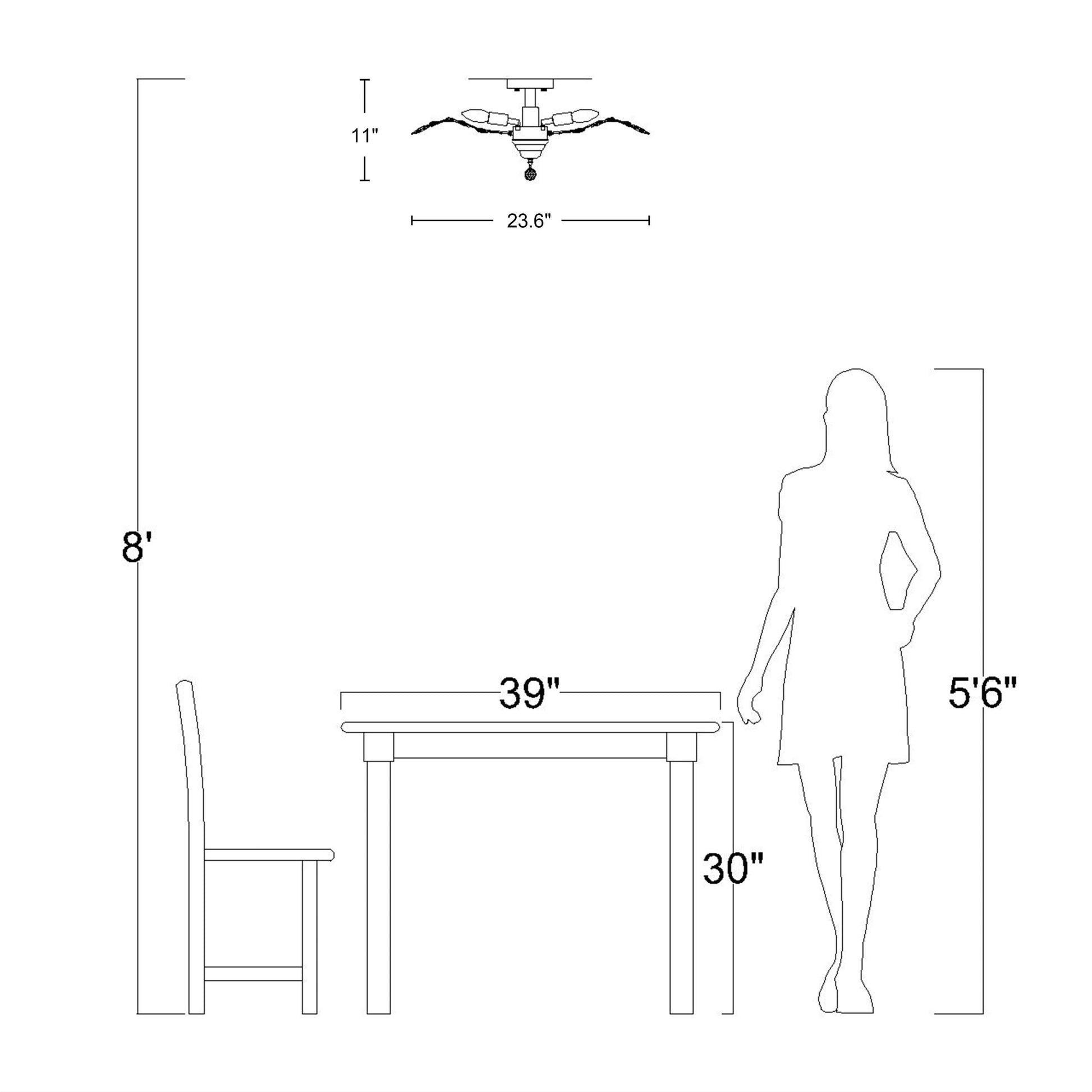 Holly, plafonnier à 4 lumières avec feuilles de...