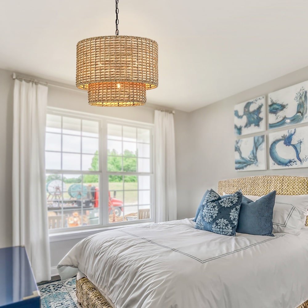 Lennie 20 in. 4-Light Rattan Tiered Drum Chandelier...