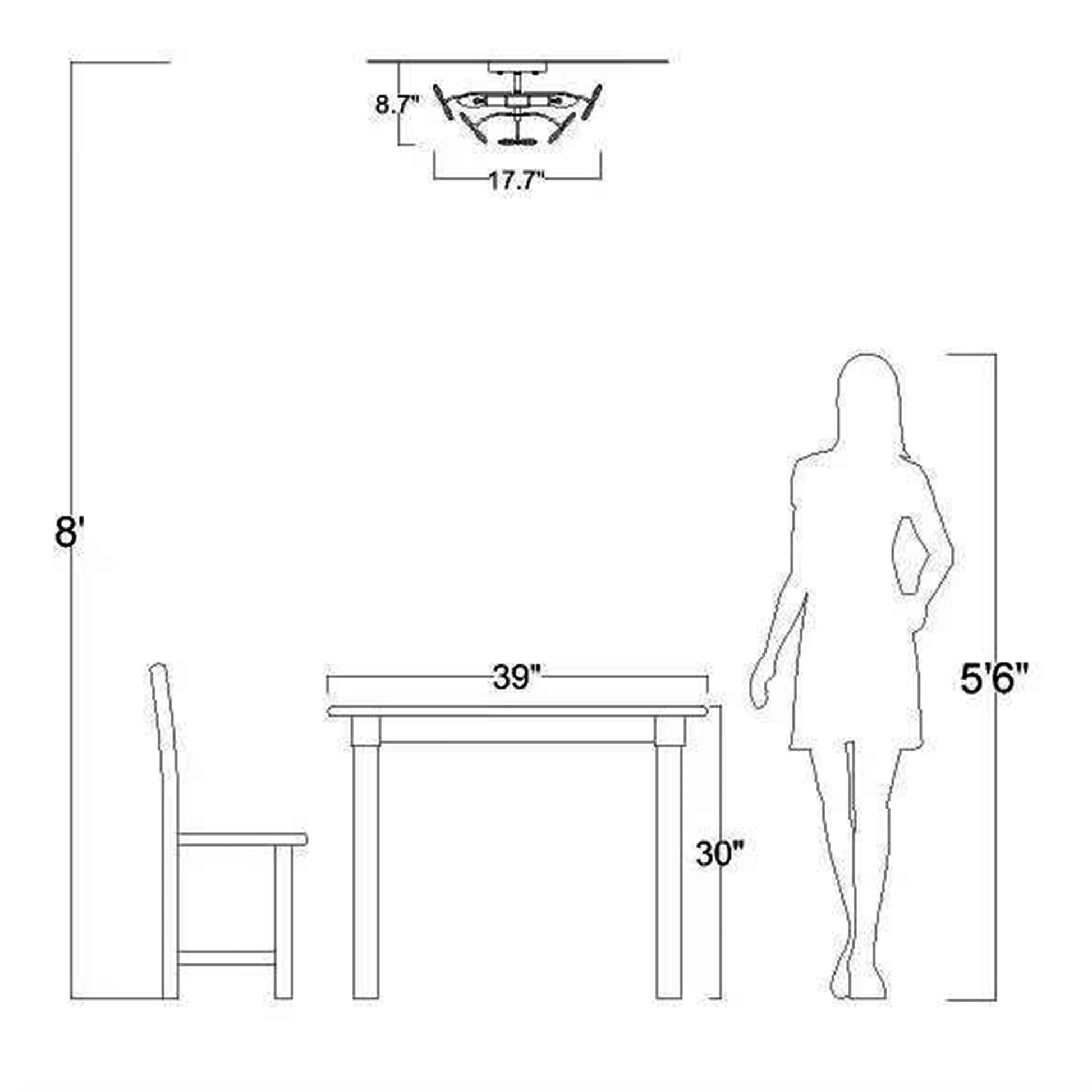 17,7 pouces de diamètre x 8,7 pouces de hauteur