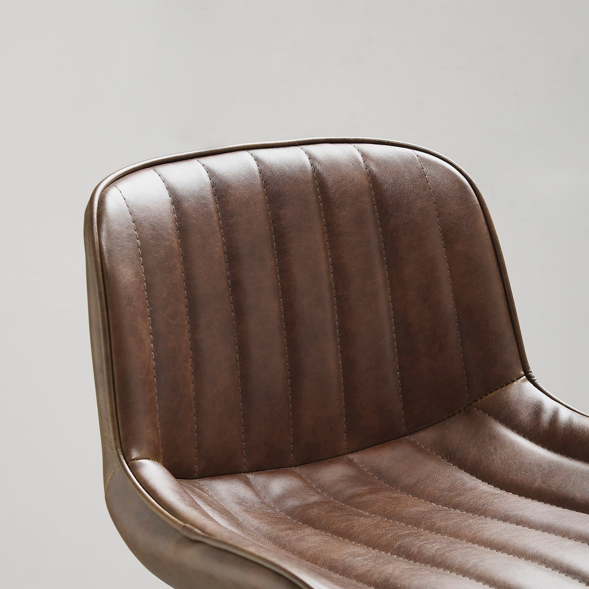 Infuse a touch of mid-century allure into your bar or kitchen counter with Art Leon’s Adjustable Swivel Barstool Set. These elegant bar stools showcase a contoured faux leather seat, complemented by a low back and classic striated quilting available in a spectrum of colors. The pedestal base, offered in sophisticated black or sleek chrome, features advanced gas-lift technology allowing for effortless height adjustment, while incorporating a convenient built-in footrest. With the ability to swivel a full 360 degrees and a robust metal frame, these armless stools are ideally suited for entertaining guests in style.