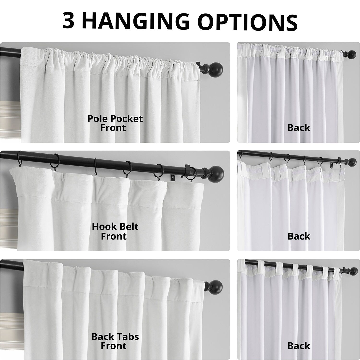 - 3-inch pole pocket header with hook belt and back tabs