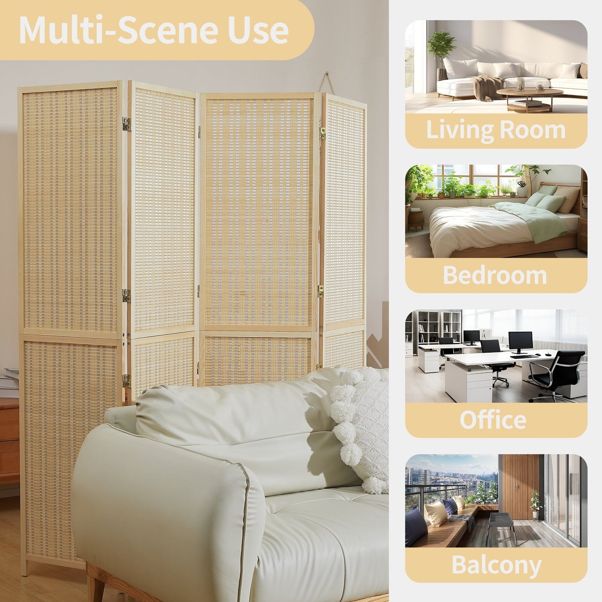 4/6 Panel Bamboo Room Divider 6 FT Detachable...
