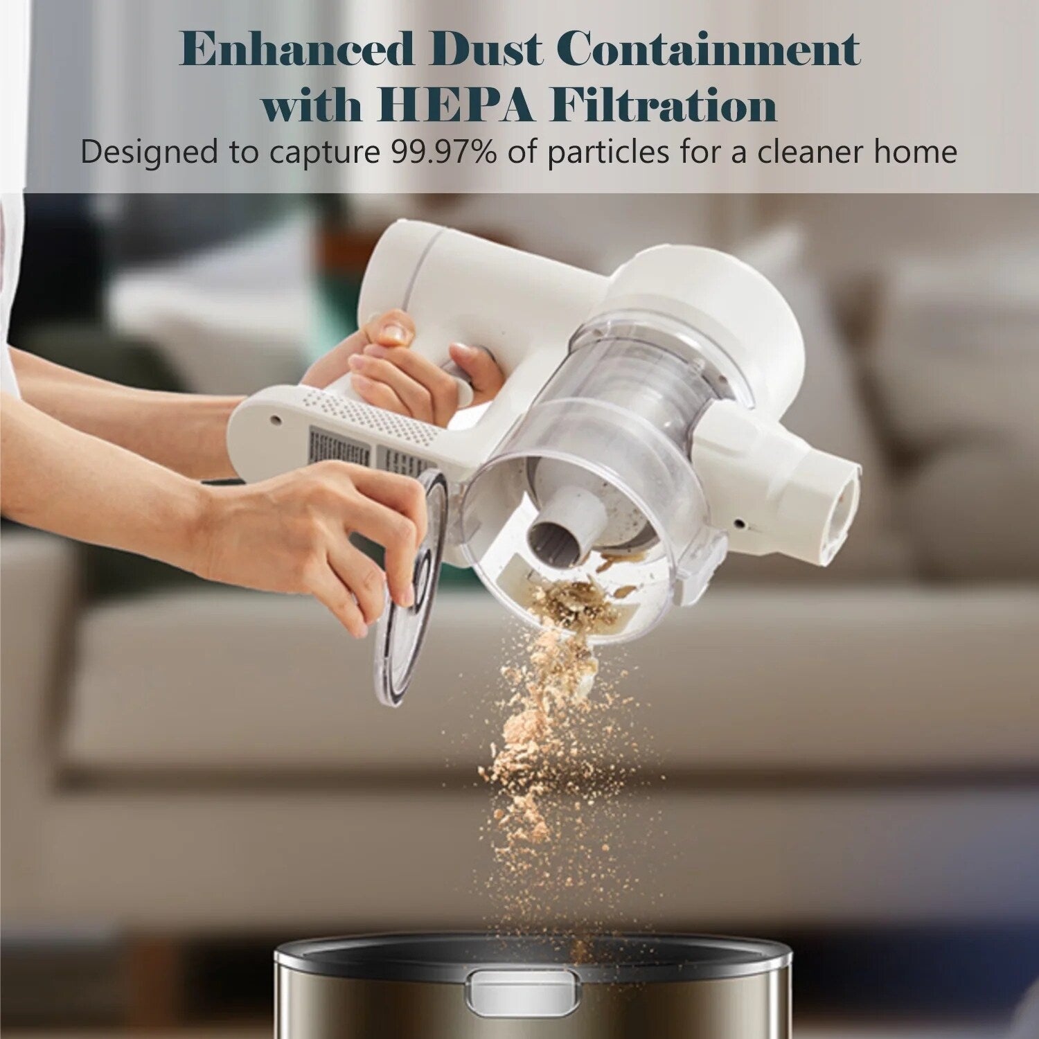 [Filtration HEPA] : Équipé d'un système cyclonique scellé avec un filtre HEPA pour piéger la poussière fine et les allergènes, empêchant ainsi la pollution de l'air. Le vidage du bac à poussière en un seul clic assure une élimination rapide.
