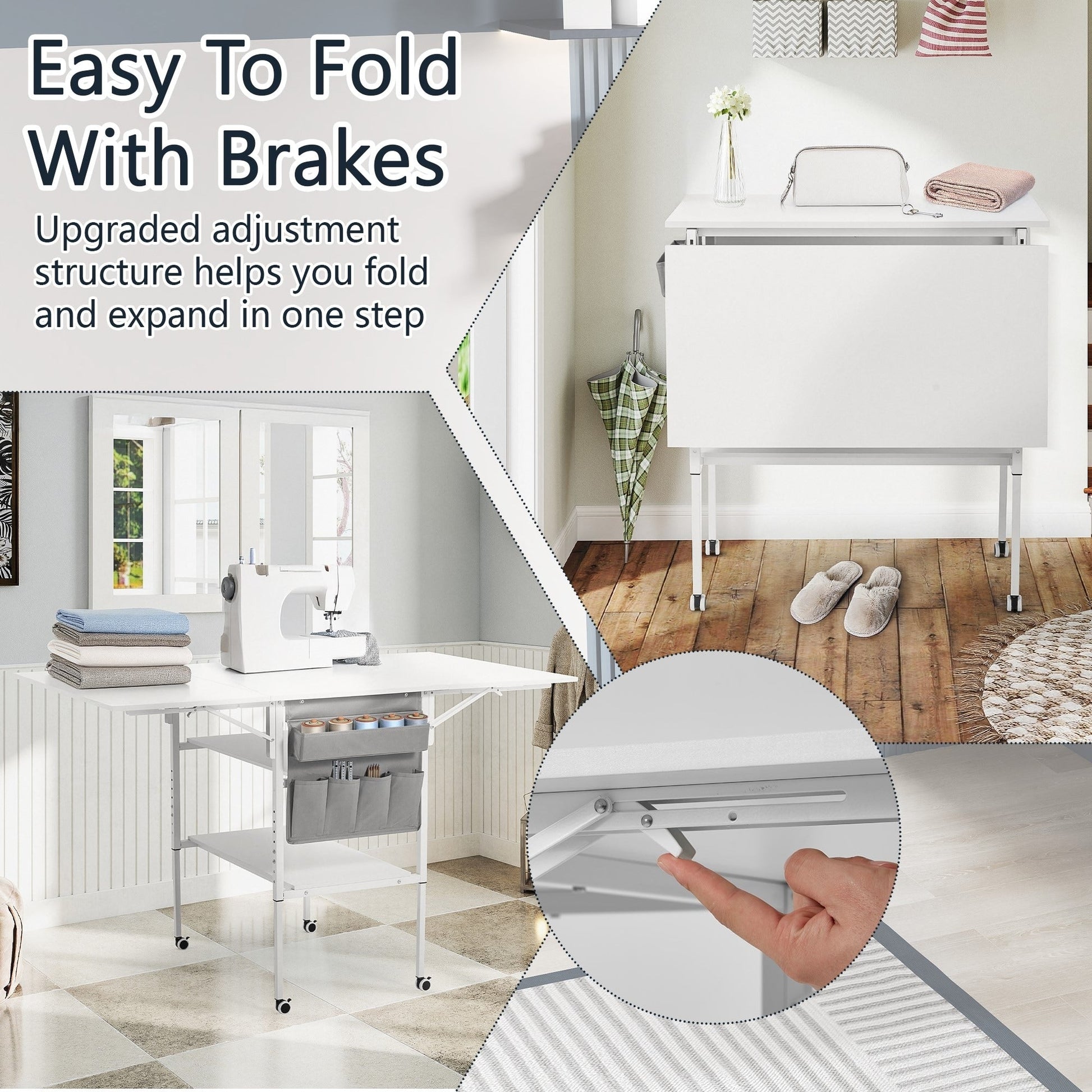 Table d'artisanat à hauteur réglable avec étagères de rangement, table de coupe pliable mobile pour le bureau à domicile, la salle de couture, la salle d'artisanat.
