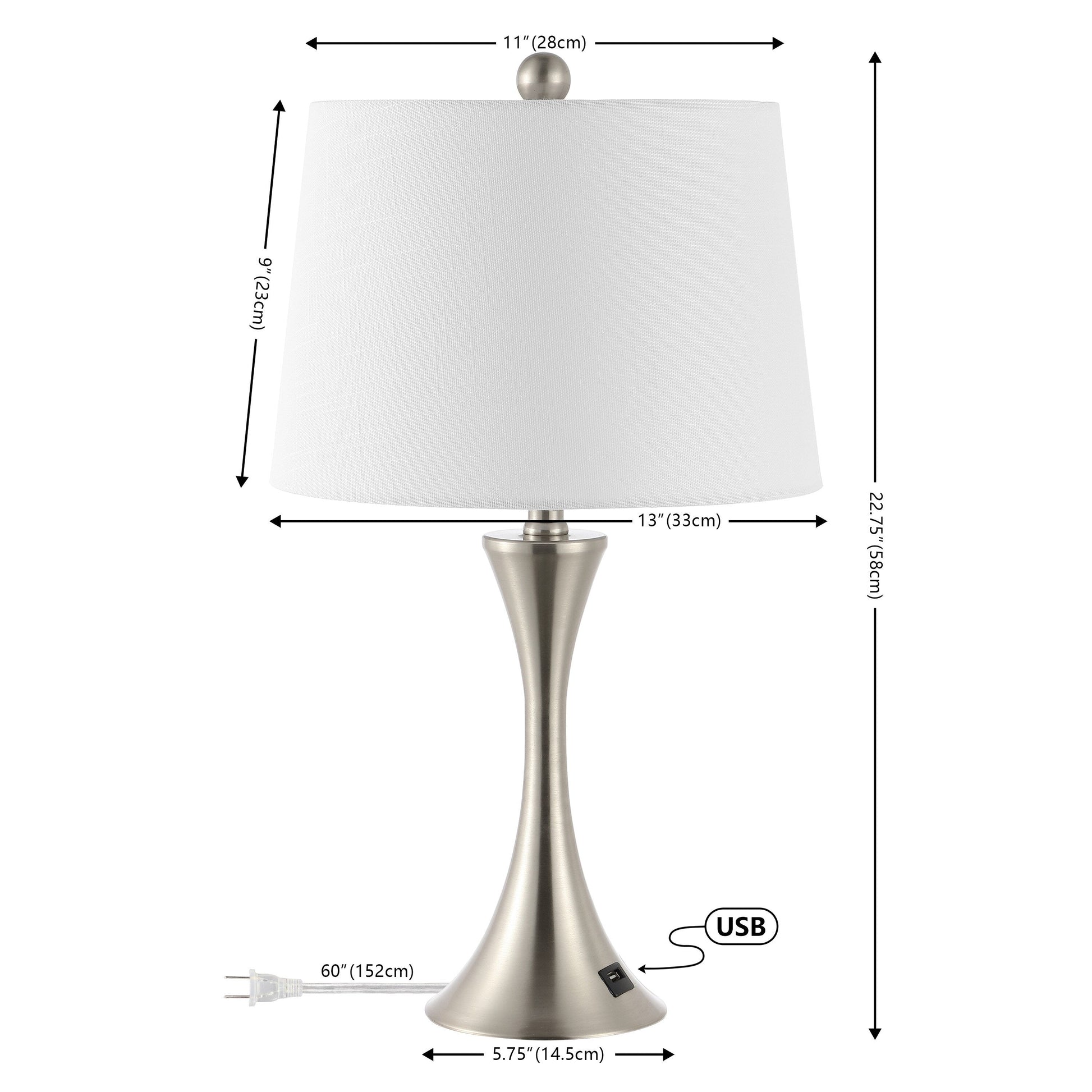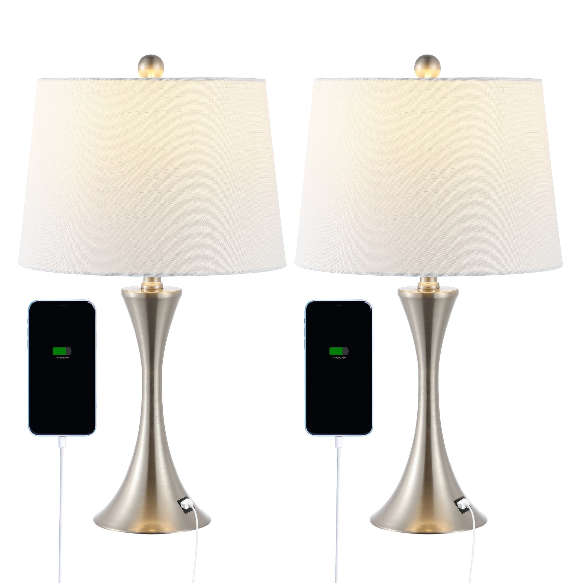 Makena 22.75 Lampe de chevet moderne et élégante en forme de sablier en fer avec port de charge USB, (lot de 2) par JONATHAN Y