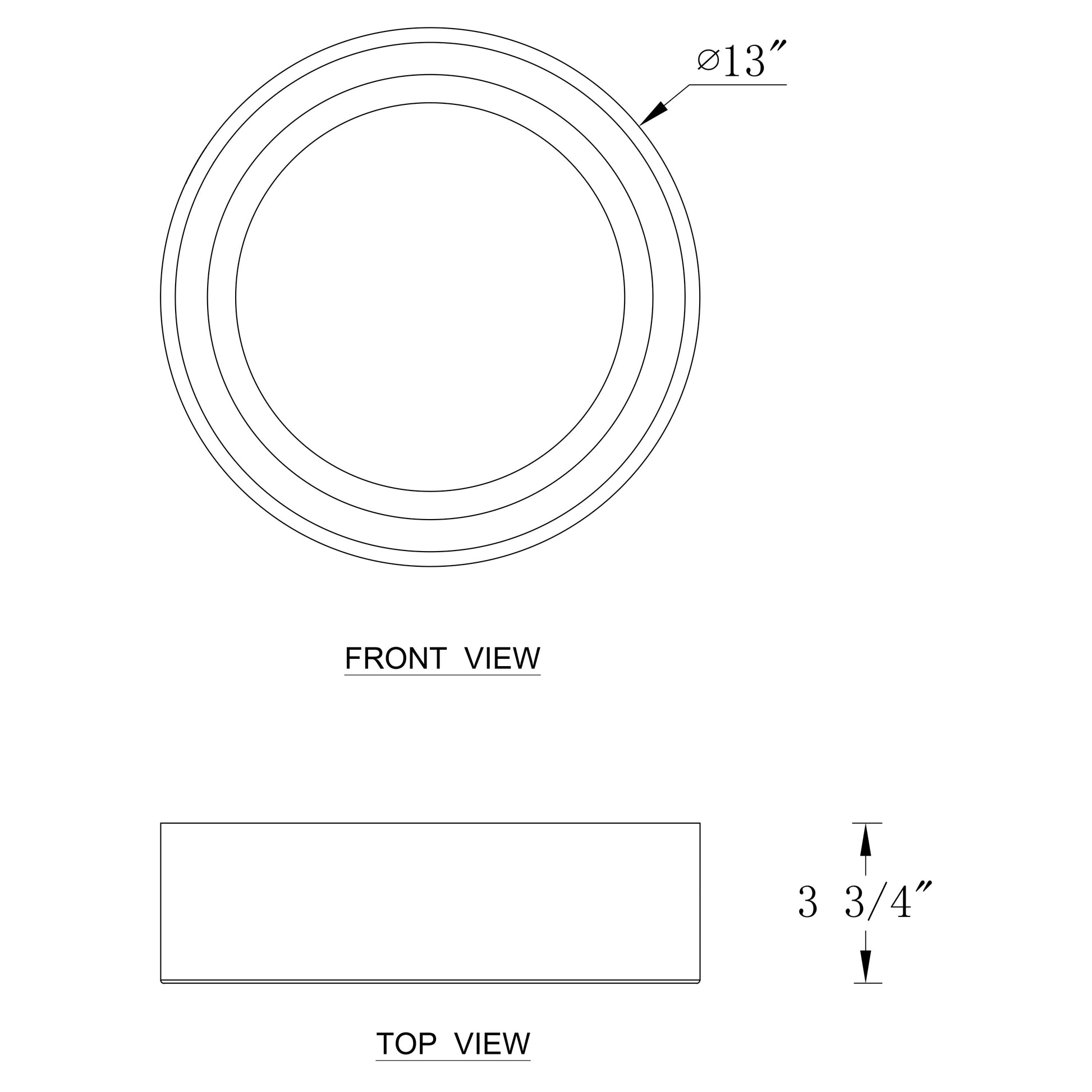 • The 13-inch light fixture is D 13' x H 3.75', and the 16-inch light fixture is D16' x H 3'.