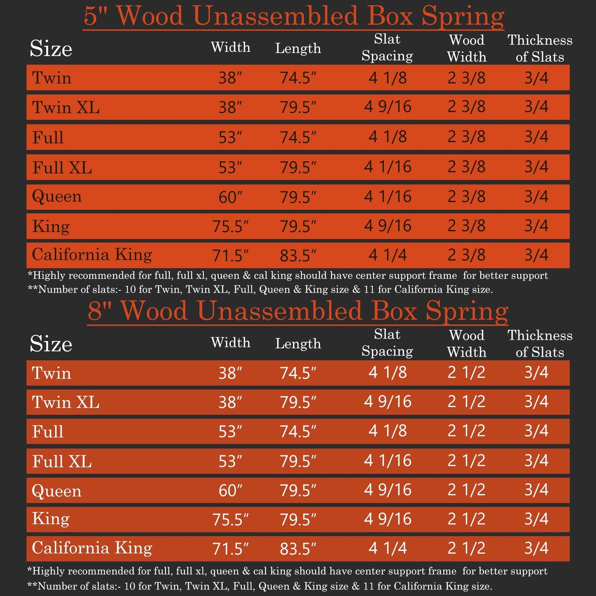ONETAN, sommier à lattes en bois de 5" et 8" facile à assembler, blanc.