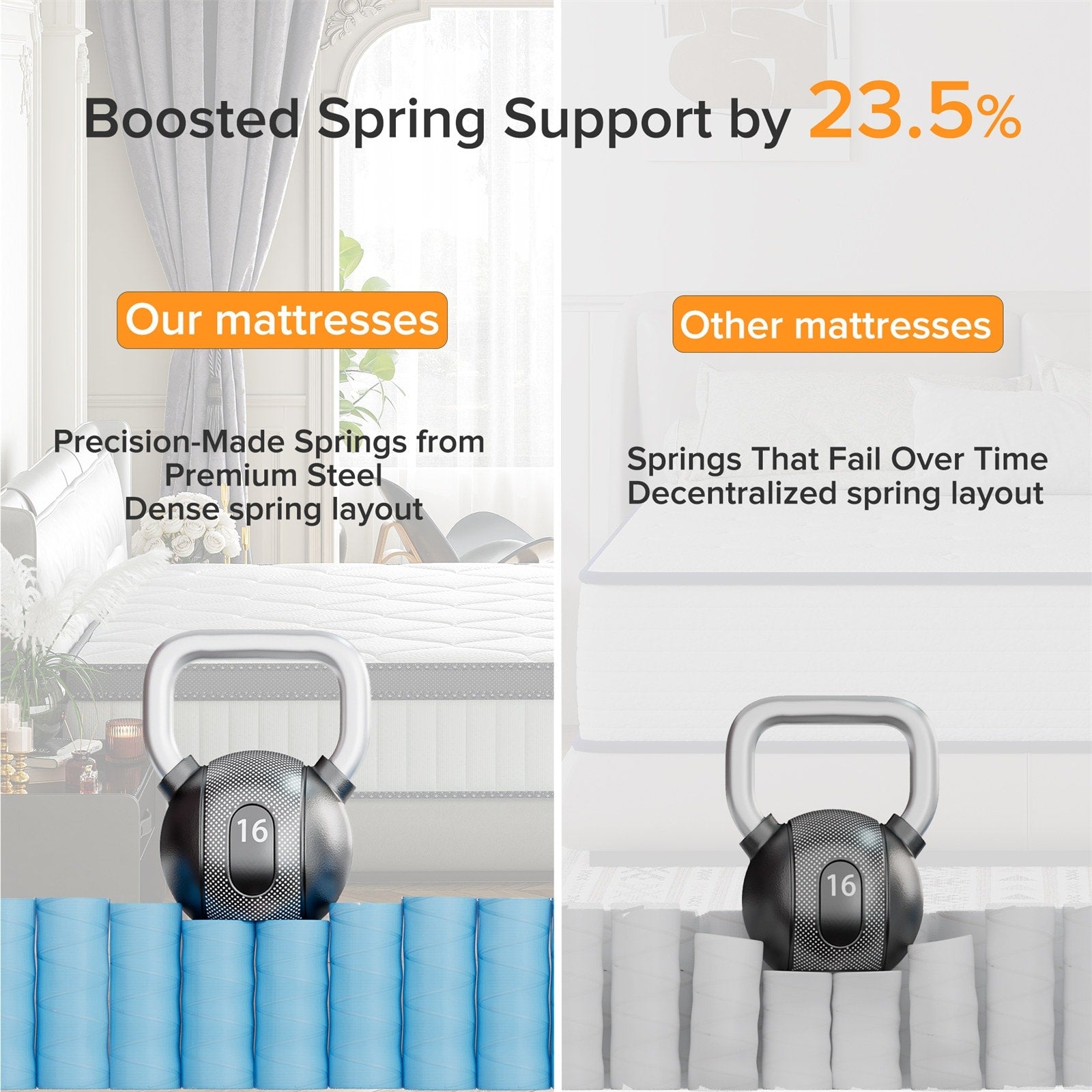 Ressorts hélicoïdaux 23,5 % plus épais que la norme du marché : offrent un meilleur soutien, une durée de vie plus longue et empêchent l'effondrement.