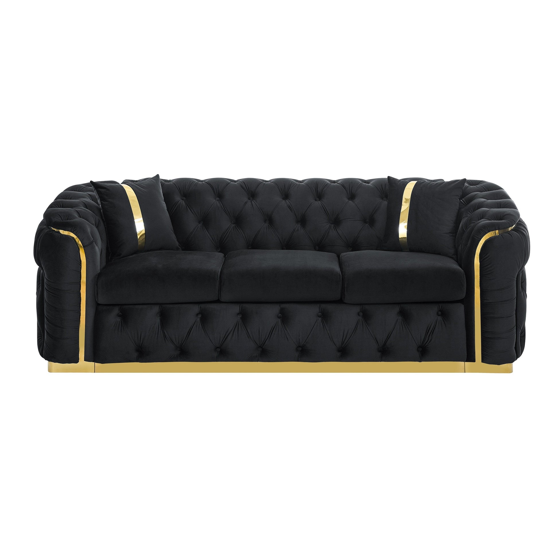 90.6 Velvet 3-Seater Sofa with 2 Pillows High-Density...