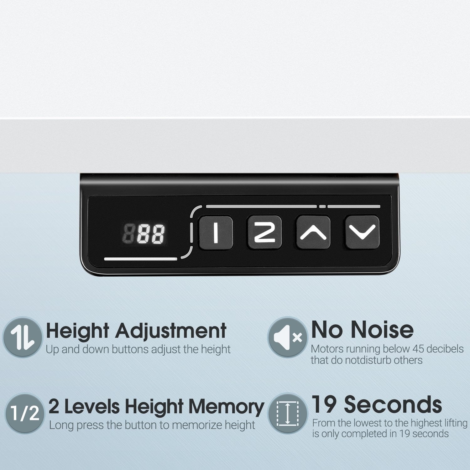 Améliorez votre configuration de bureau à domicile avec le bureau debout électrique à hauteur réglable Homall. Conçu pour offrir un espace de travail confortable et personnalisable, ce bureau est disponible en plusieurs couleurs et tailles pour répondre à vos besoins. Le système de moteur électrique vous permet de régler la hauteur du bureau en douceur et rapidement, avec la commodité supplémentaire d'une fonction mémoire à 2 positions. Le bureau fonctionne avec un faible bruit, assurant un environnement de travail silencieux. Avec une structure en acier de qualité industrielle et un plateau de bureau solide, ce bureau peut supporter jusqu'à 80 kg. Le montage est rapide et facile, prenant moins de 30 minutes avec le manuel fourni.