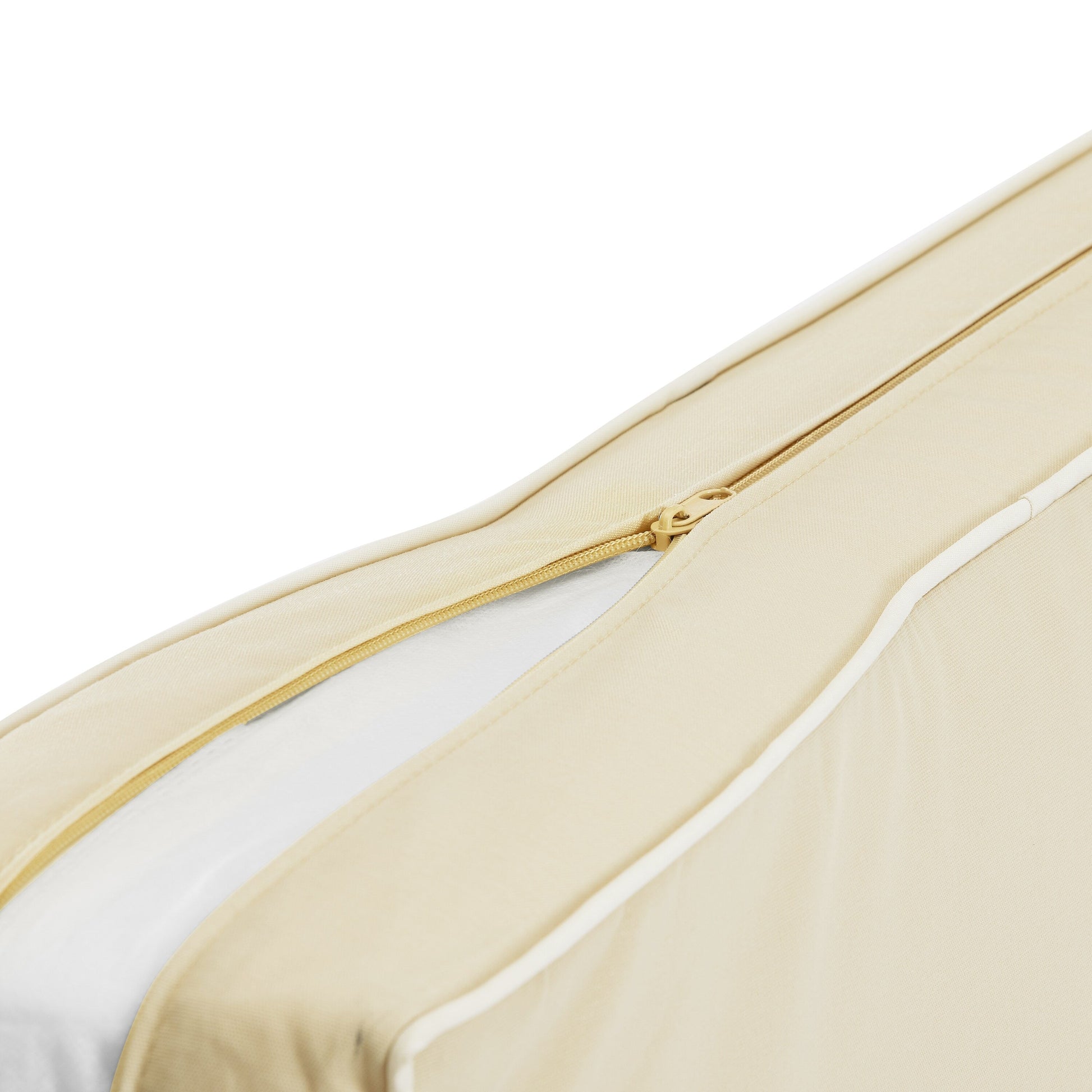 • Frettes de coussin en gris, bleu marine, rouge sangria foncé, sable neutre ou blanc avec passepoil contrastant.