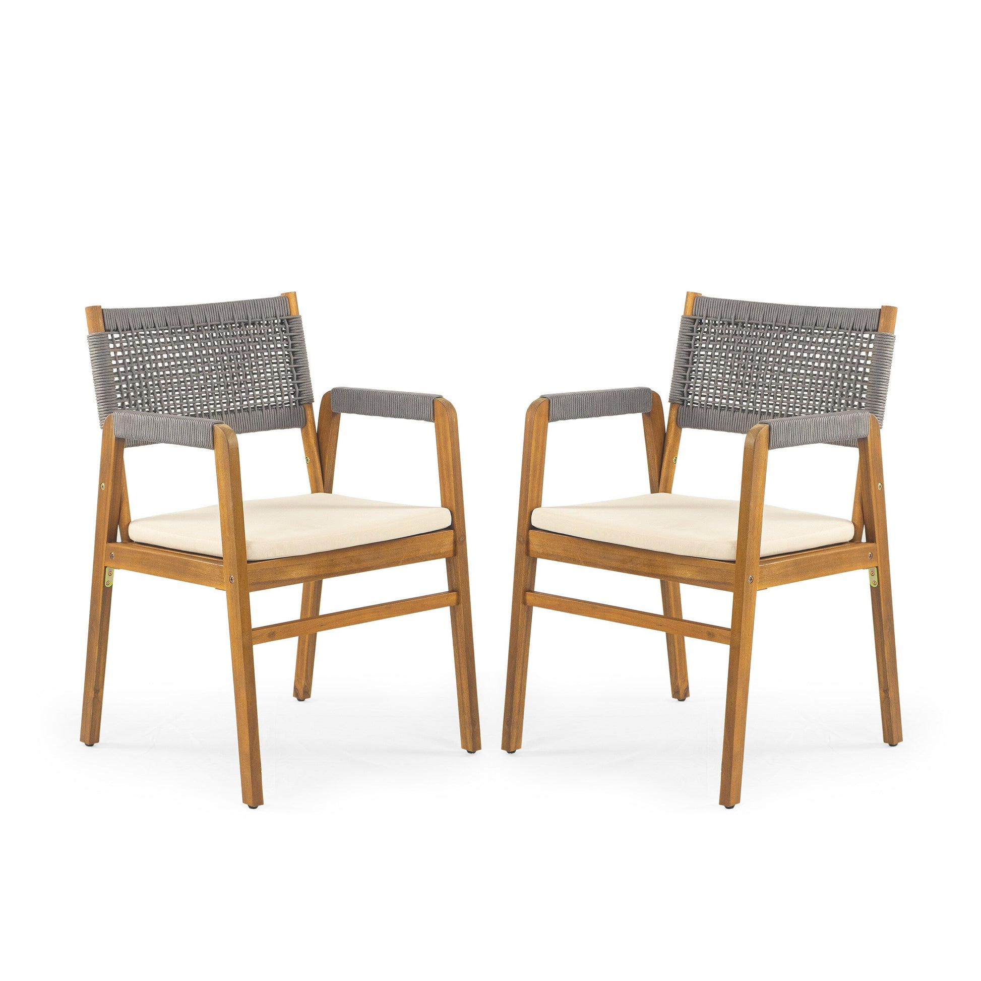 Rehaussez votre espace extérieur avec cet ensemble de meubles en bois d'acacia élégant. L'ensemble comprend deux chaises avec des dossiers confortables en corde tressée et une table de bistro en acacia assortie avec une finition teck élégante. Le design durable et résistant aux intempéries est parfait pour une utilisation de longue durée. Facile à assembler, les outils sont inclus. Dimensions des chaises : 54,6 cm L x 54,6 cm P x 83,2 cm H. Dimensions de la table : 79,5 cm L x 79,5 cm P x 76,2 cm H. ?