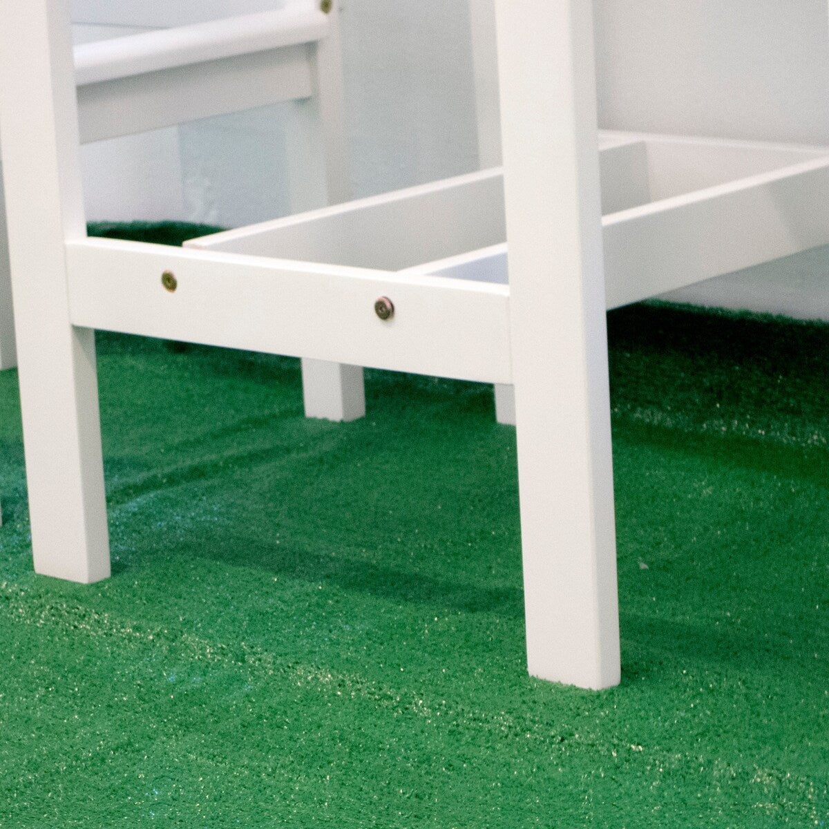 • Dessus de table et dossier de chaise à lattes, pieds soutenus par des bases métalliques pour plus de durabilité.