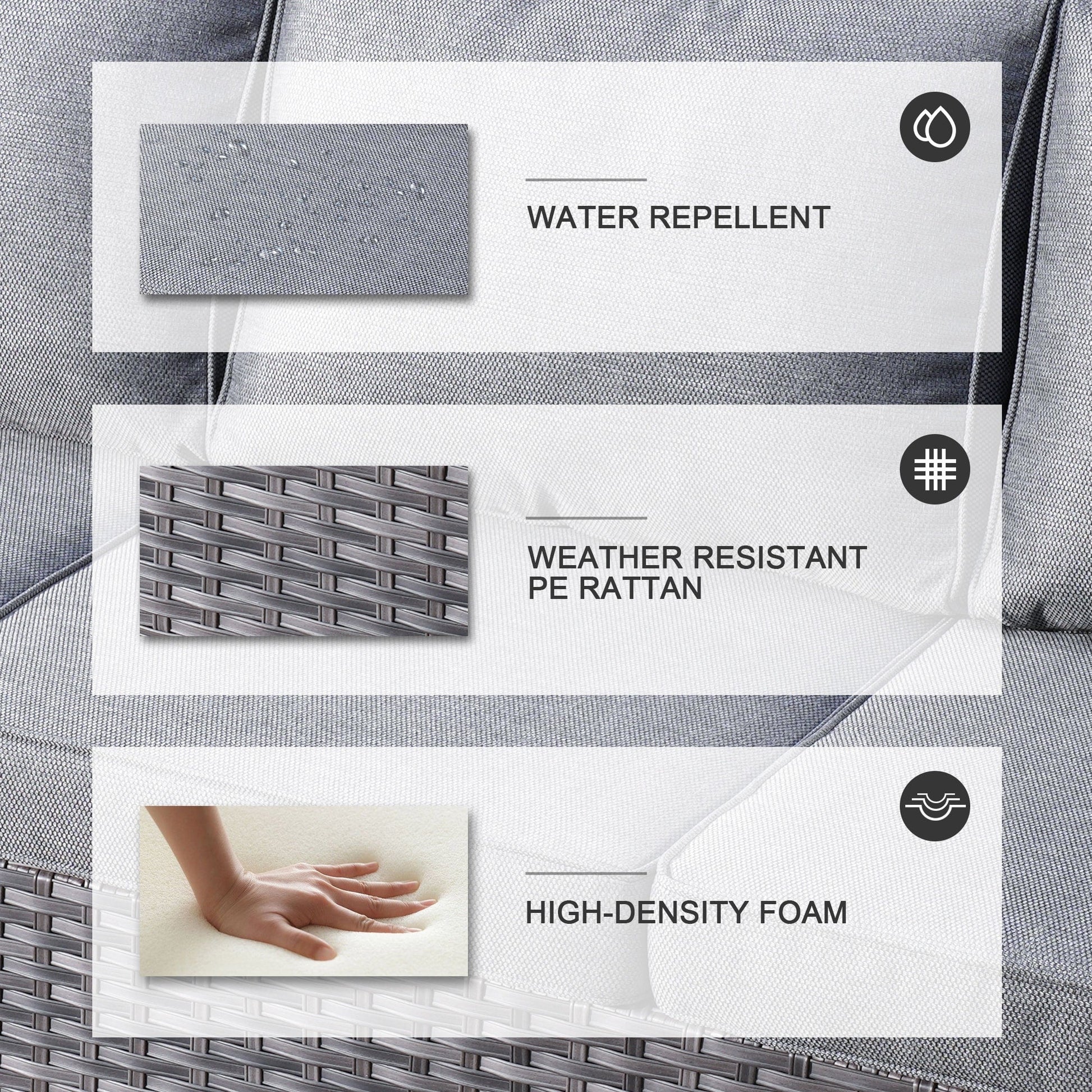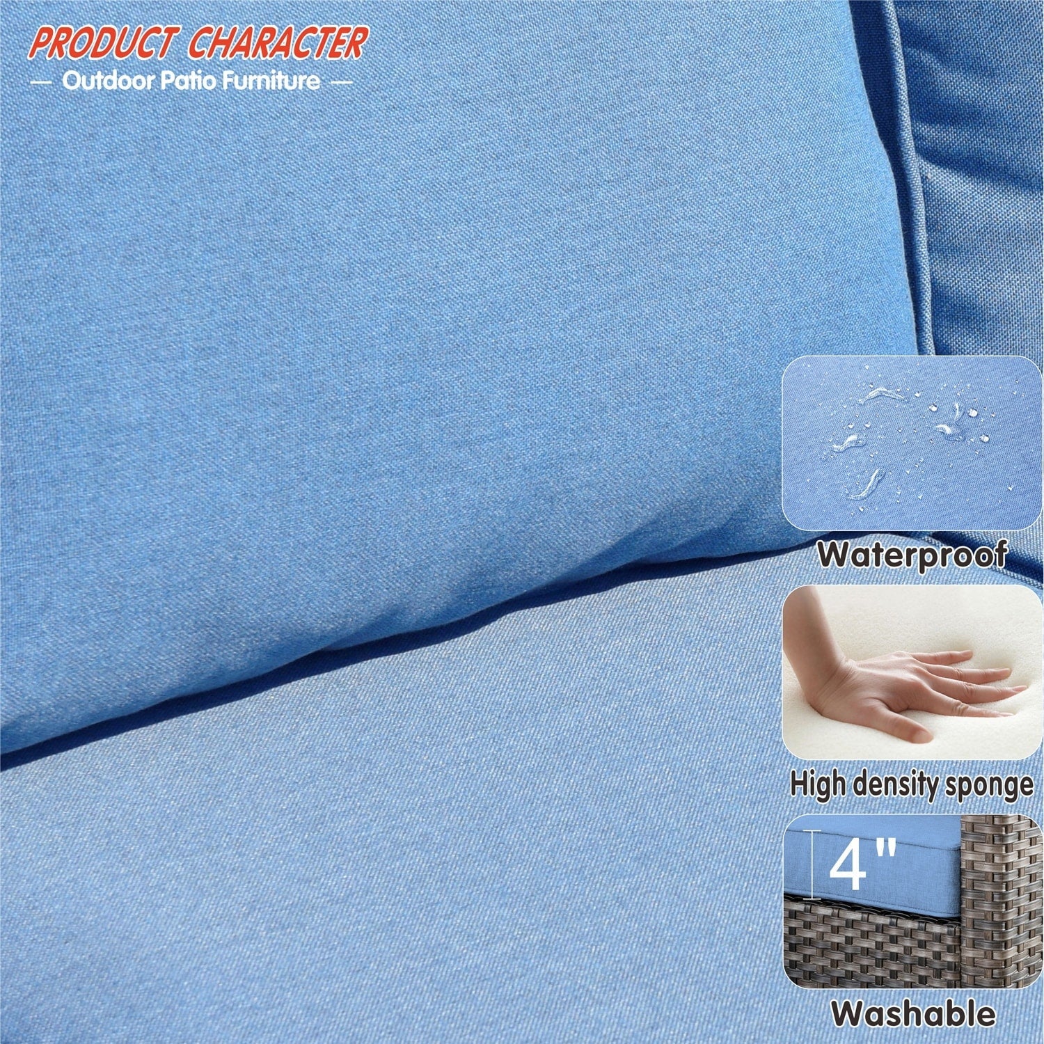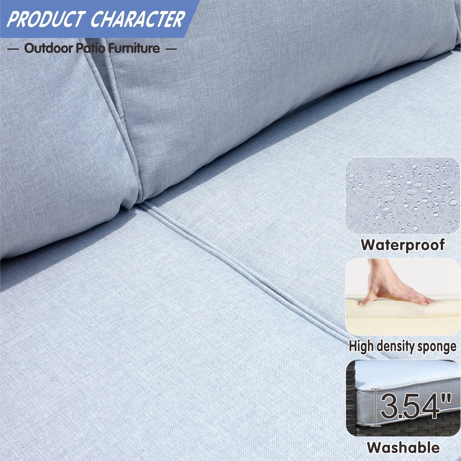 • Water-Resistant & Weather-Ready: The cushions and furniture are designed to resist water, making them ideal for withstanding light rain or snow. While this set handles most weather conditions with ease, it's best to protect it from extreme weather for longevity.