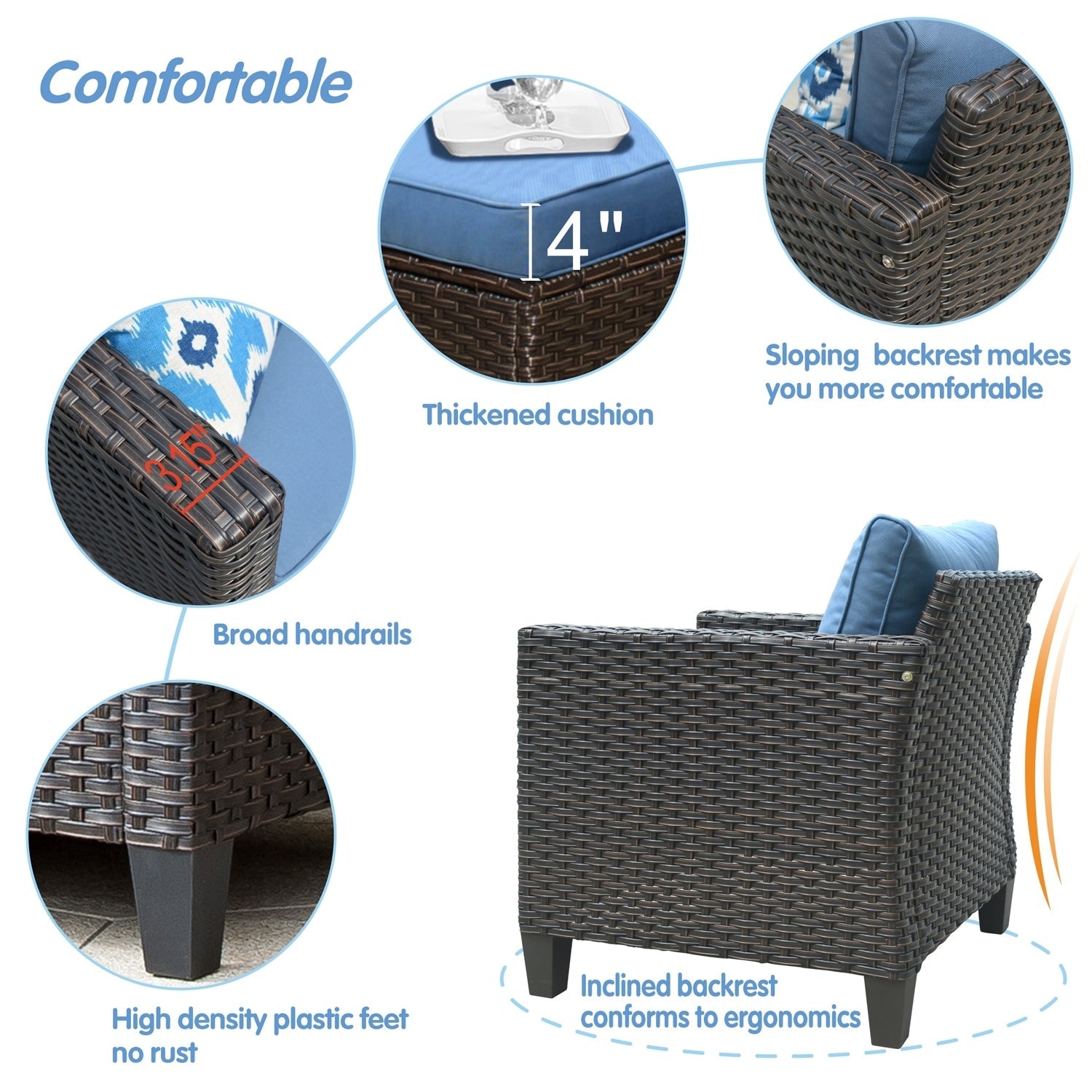 • Durable Wicker Design: The sturdy, all-weather wicker construction ensures long-lasting durability, resistant to fading and damage from the elements. This set is built to withstand the outdoor conditions for years to come.