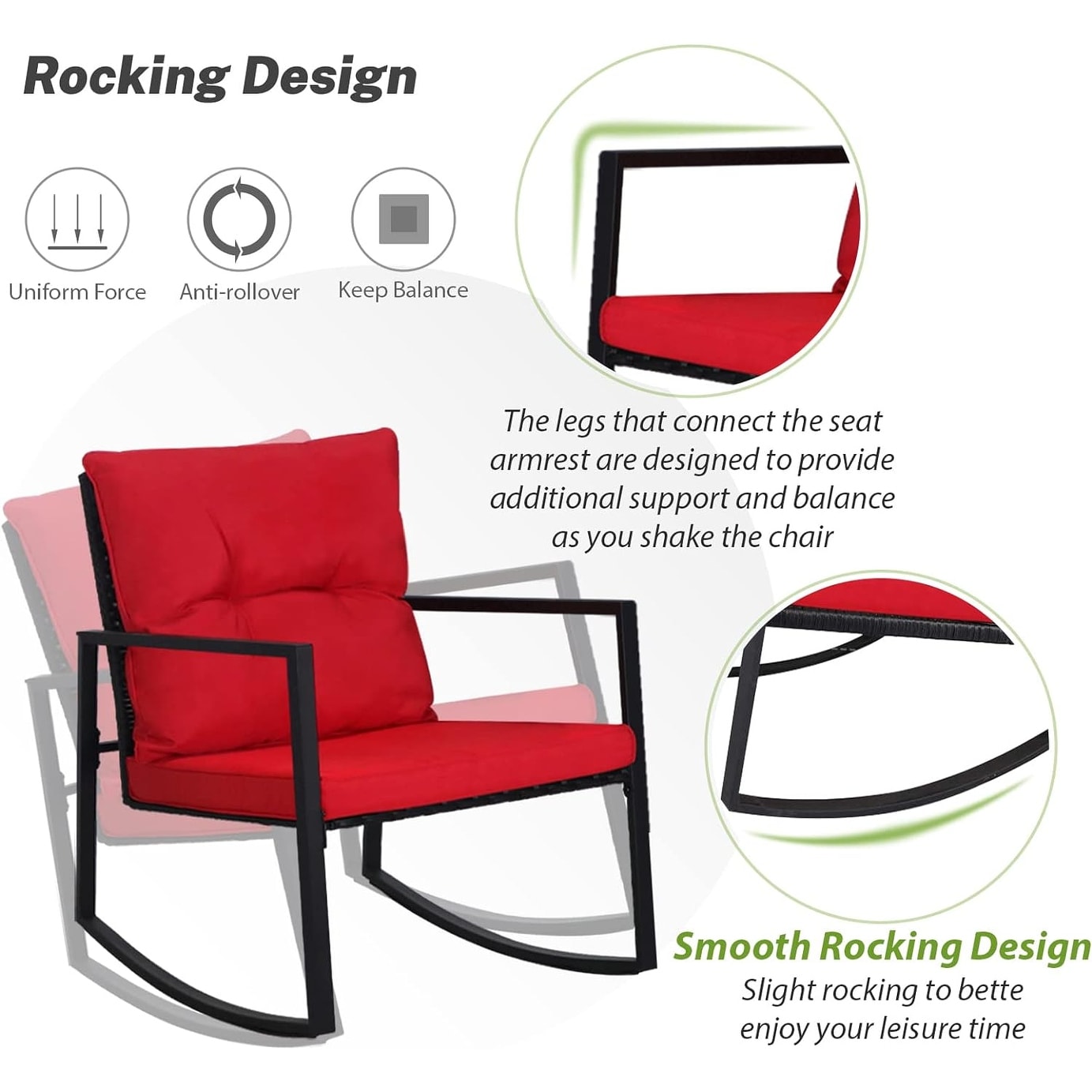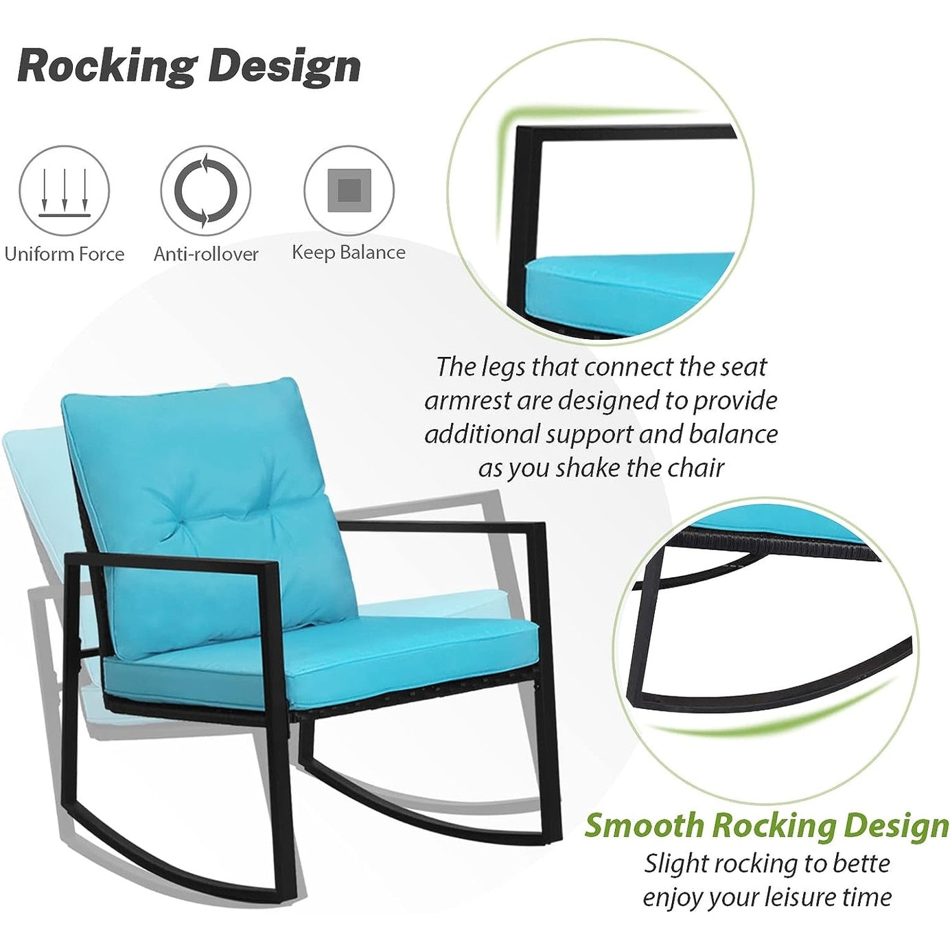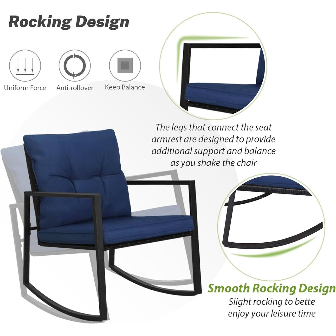 Détendez-vous avec style grâce à l'ensemble bistro en osier tressé et à balancier SUNCROWN pour extérieur, composé de 3 pièces. Cet ensemble durable comprend deux chaises à balancier rembourrées et une table basse carrée, toutes fabriquées avec une structure en fer et un osier PE tressé. Les chaises sont dotées de coussins en tissu polyester avec un rembourrage en mousse, disponibles en plusieurs couleurs avec des housses zippées. Avec son design contemporain et sa finition noire, cet ensemble s'intègre à tous les décors.
