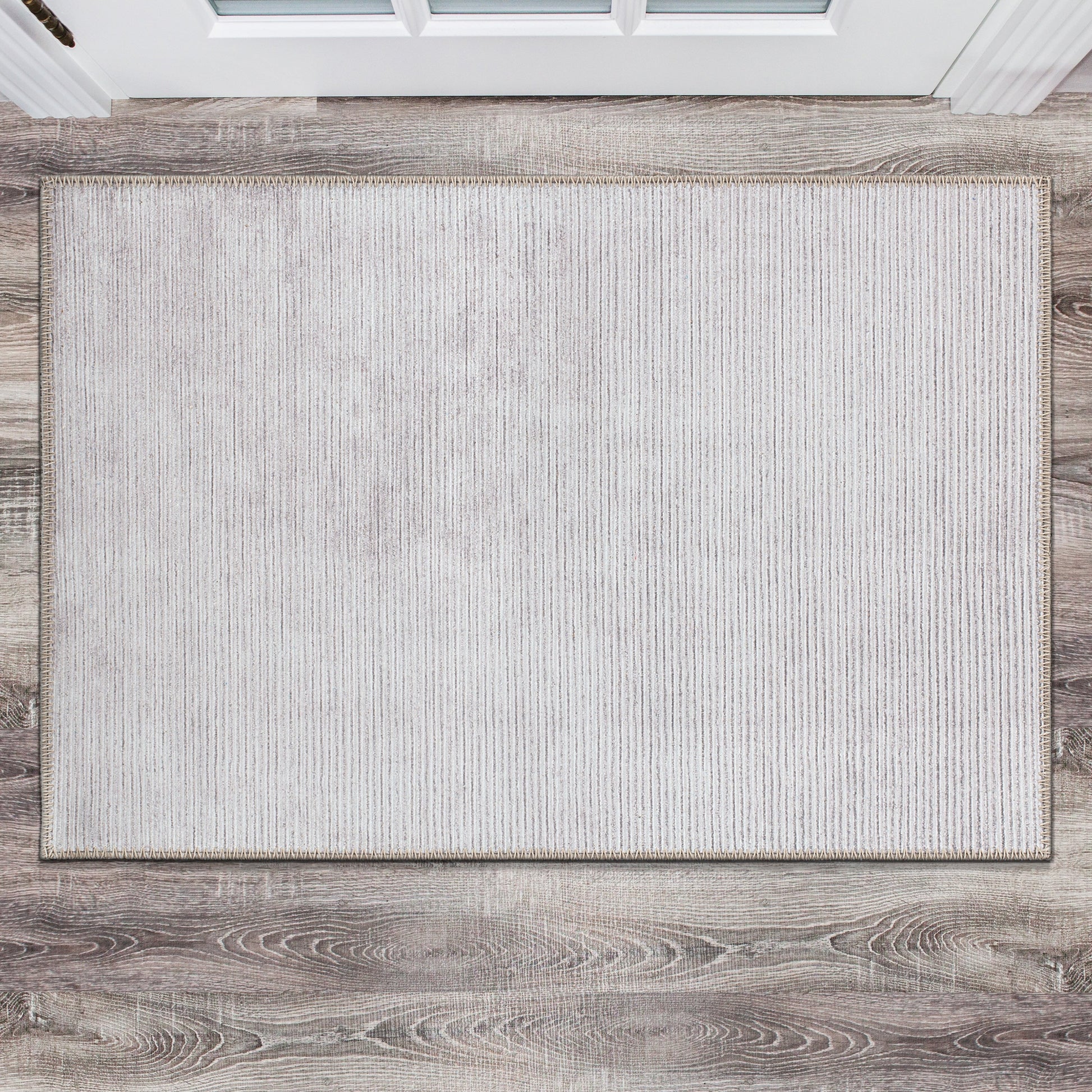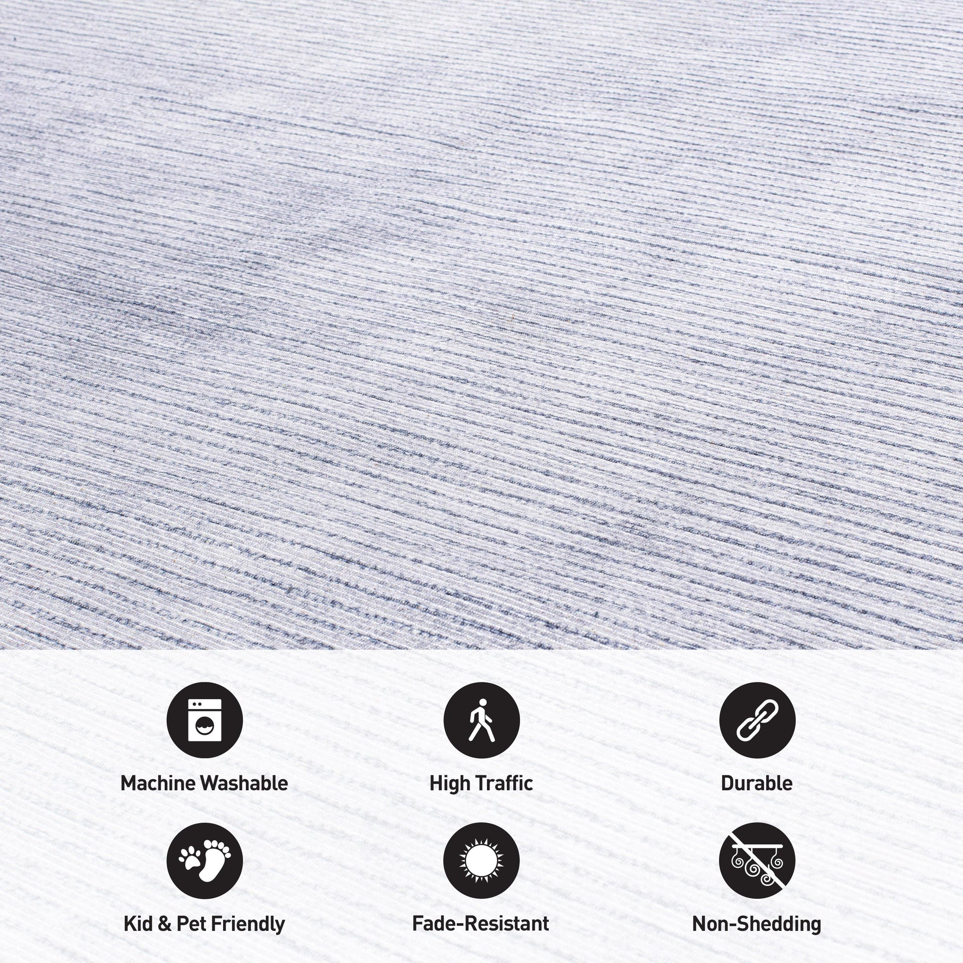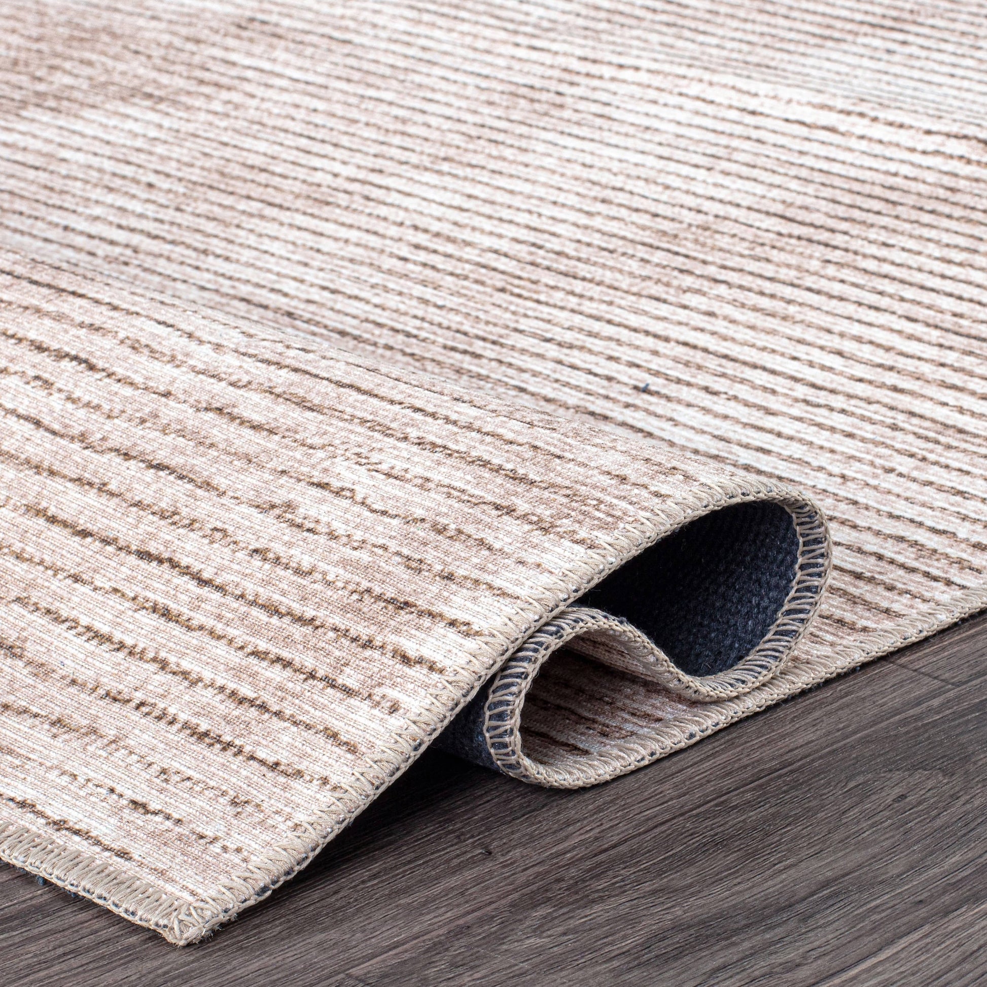 Contemporary Distressed Stripe Machine Washable Area Rug