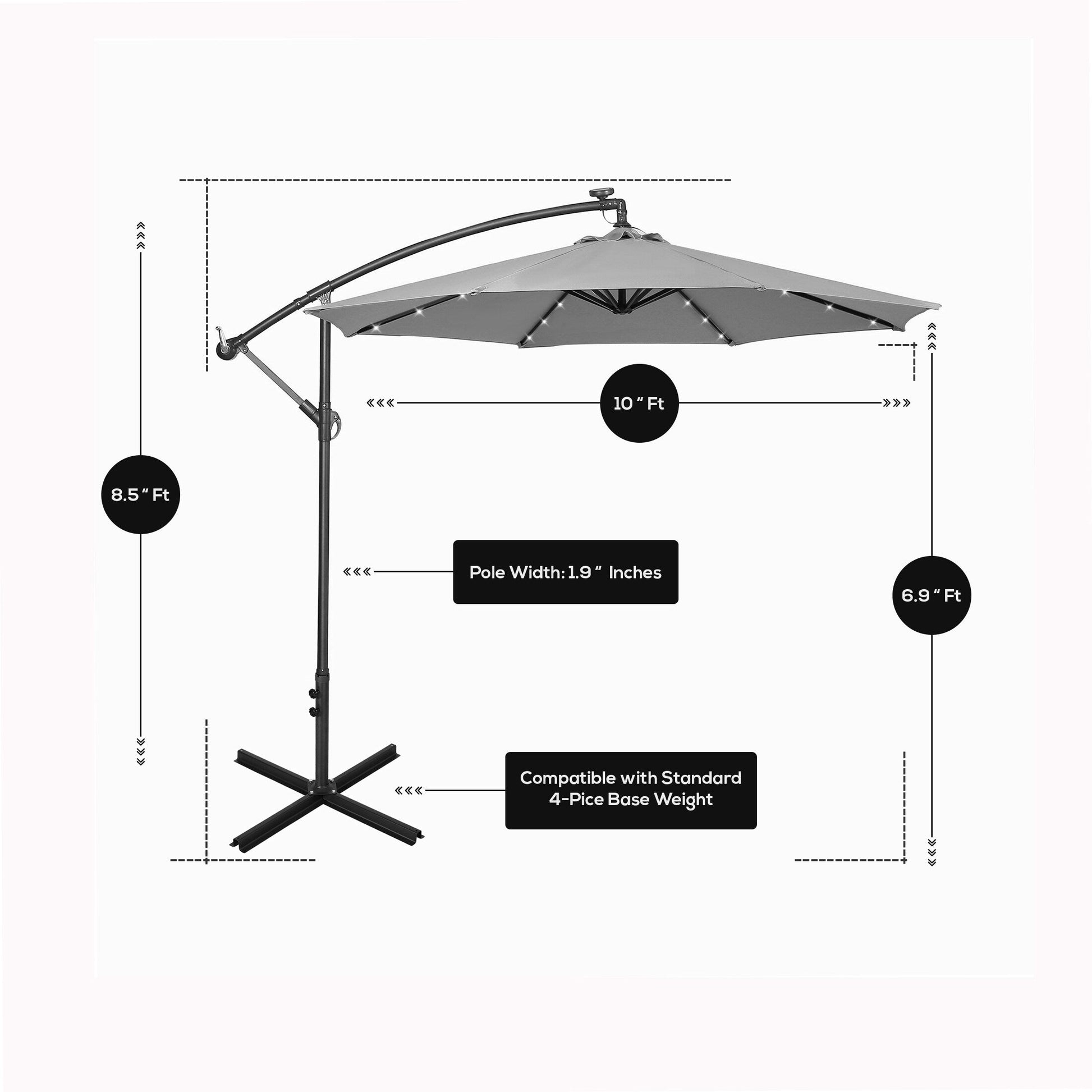 Parasol de terrasse à éclairage solaire de 3...