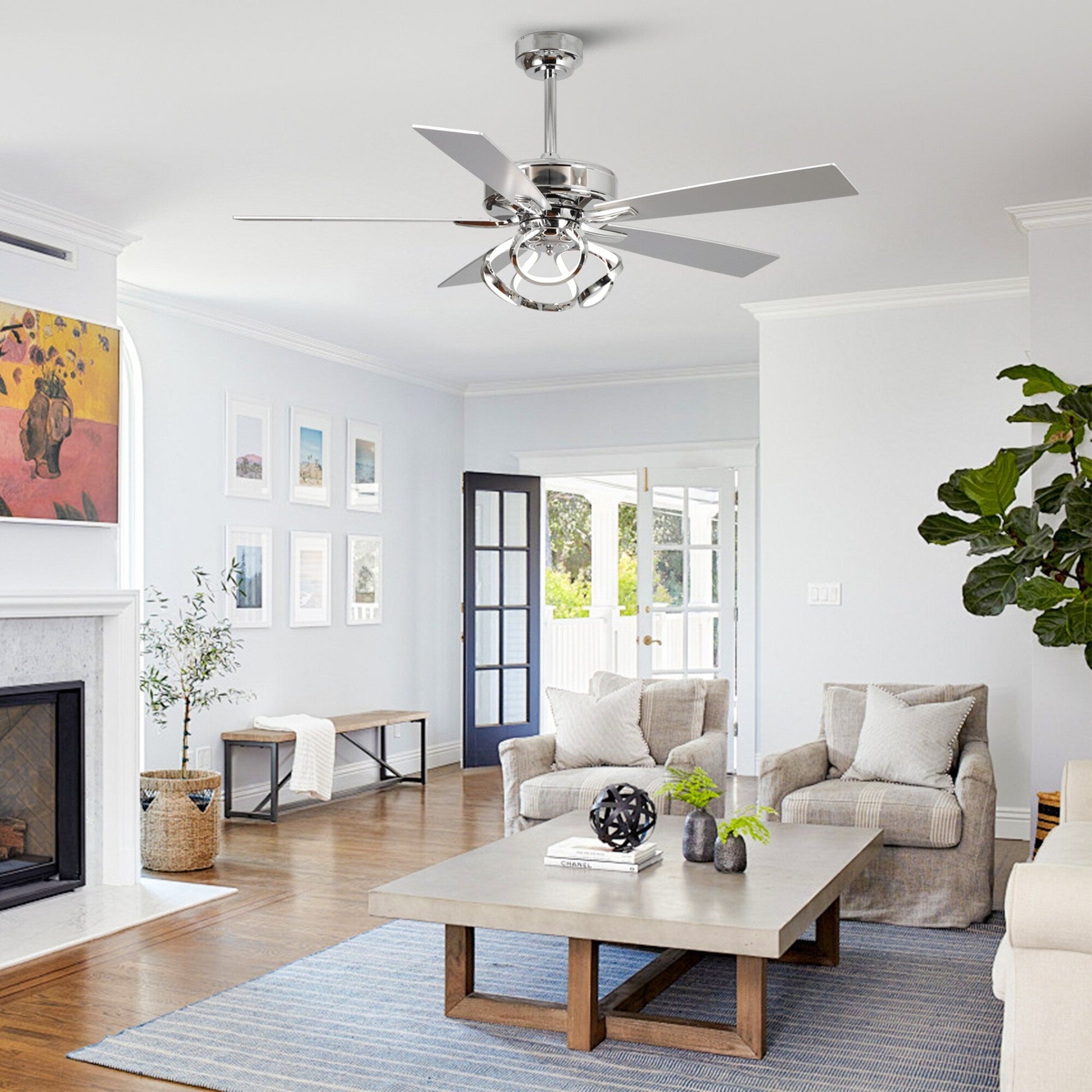 Rafraîchissez votre intérieur avec ce ventilateur de plafond LED chromé de 52 pouces avec lumière et télécommande, conçu pour allier style élégant et confort toute l'année. L'appareil est doté d'une bande lumineuse LED intégrée unique à motif torsadé, combinant art moderne et fonctionnalité quotidienne. Cinq pales réversibles en argent et brun foncé offrent un style polyvalent, tandis que le moteur CC silencieux à 6 vitesses fournit un flux d'air puissant allant jusqu'à 3920 CFM. L'éclairage LED intégré de 24 W offre trois températures de couleur (3000K/4000K/6000K) avec luminosité dimmable, vous donnant un contrôle total de l'ambiance de la pièce. Une télécommande pratique permet d'ajuster facilement la vitesse, l'éclairage et le mode inverseur pour un confort toute l'année. Parfait pour les salons, les chambres à coucher ou les espaces ouverts, ce ventilateur s'intègre parfaitement à un décor de style farmhouse, transitionnel ou contemporain.