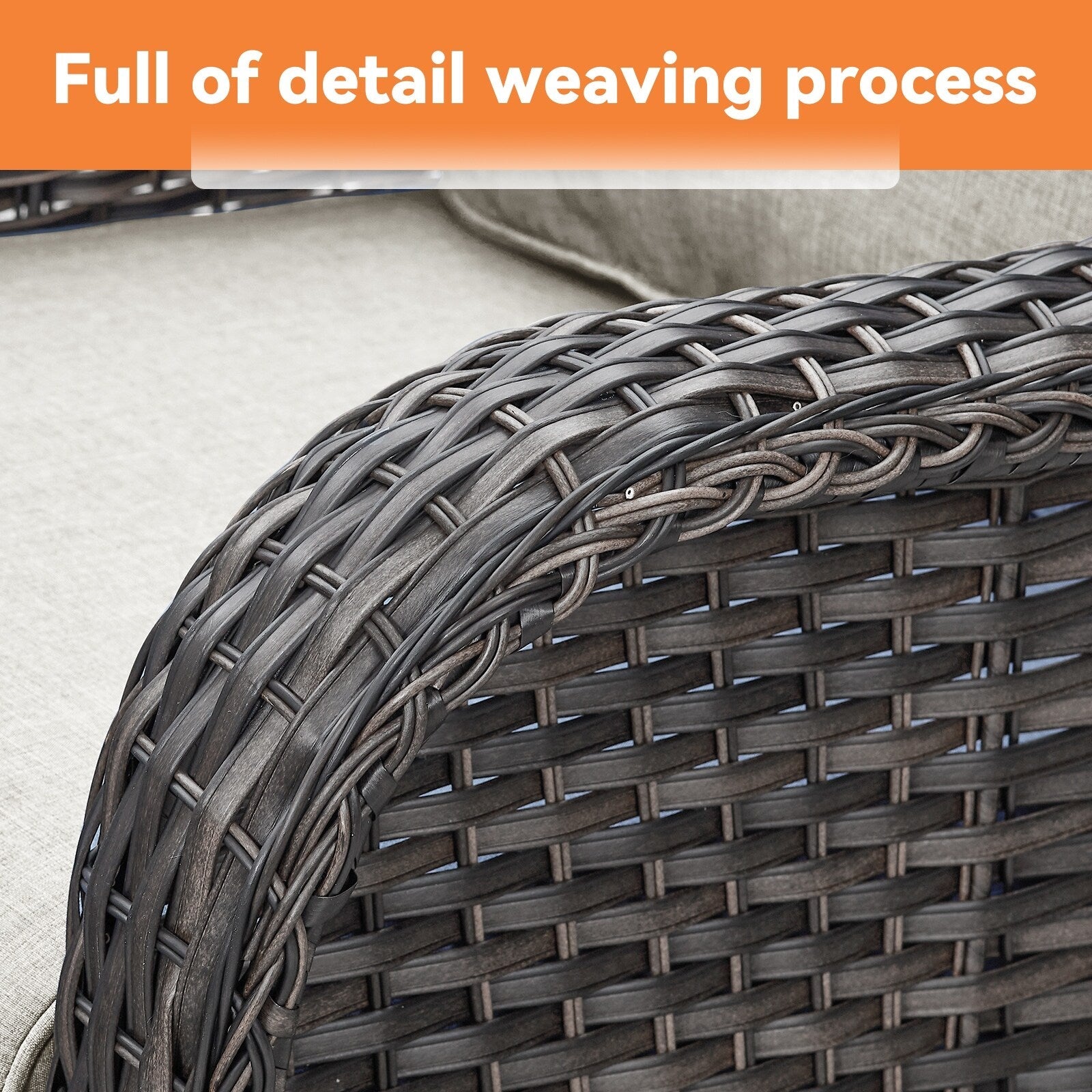 Gymojoy Ensemble de 3 pièces en rotin pour extérieur, chaise basculante pivotante avec coussin et table.