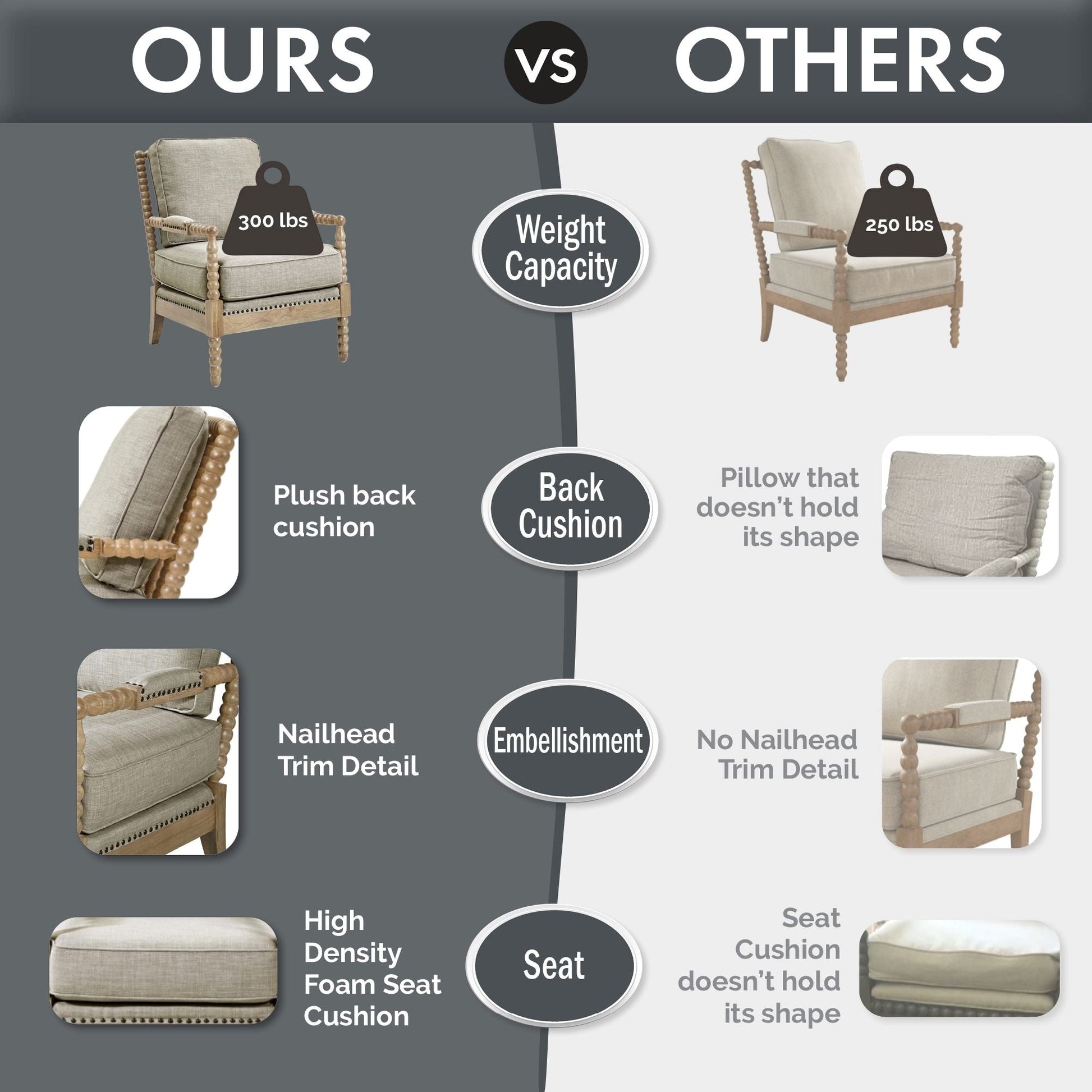 • Fauteuil classique mais décontracté avec un dossier ajouré à balustres et des détails en bois tourné sur les pieds avant pour un charme intemporel.