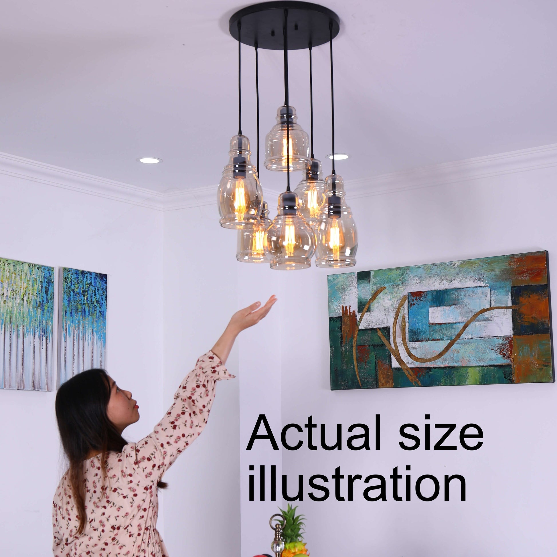Suspension à 6 lumières Mariana en verre Cognac,...