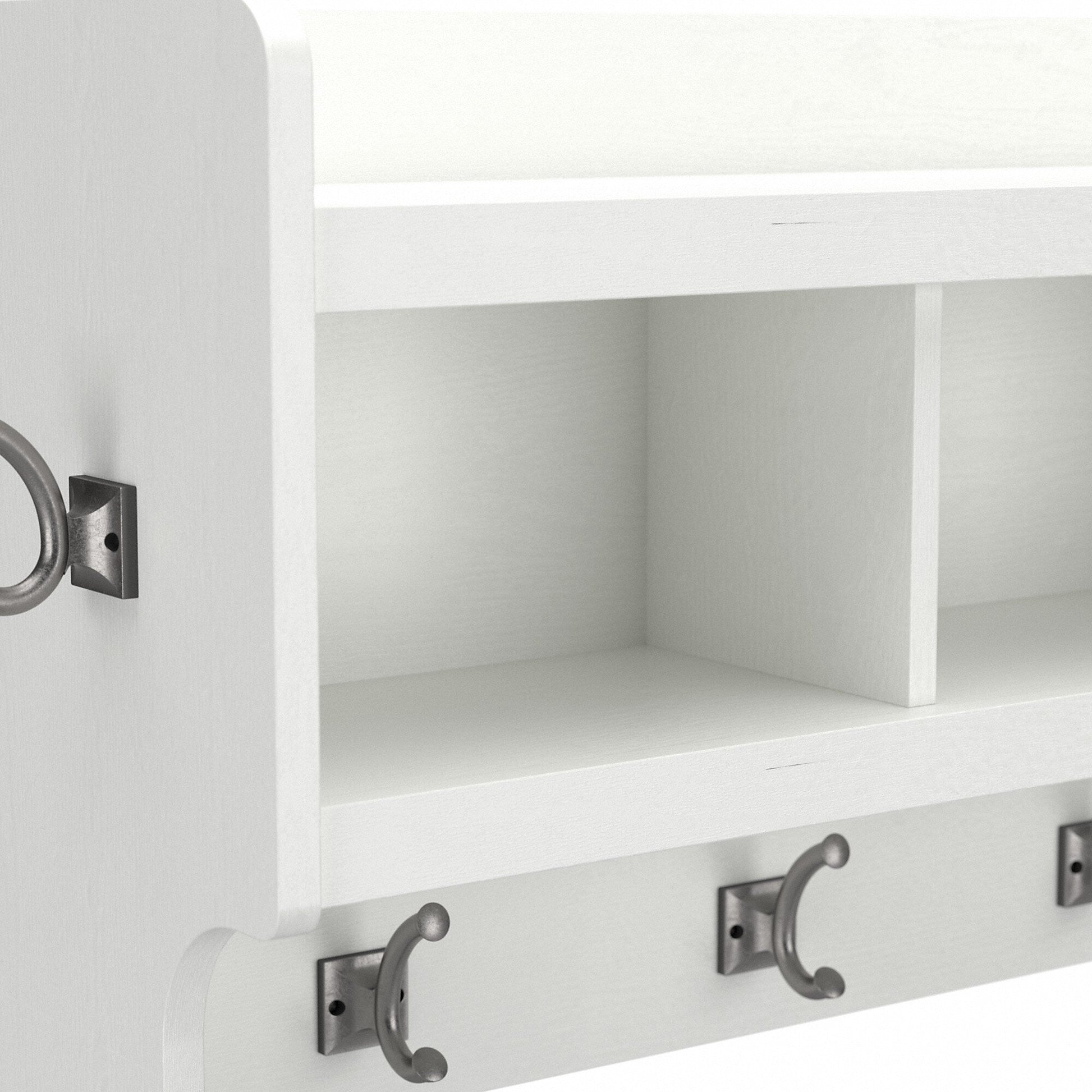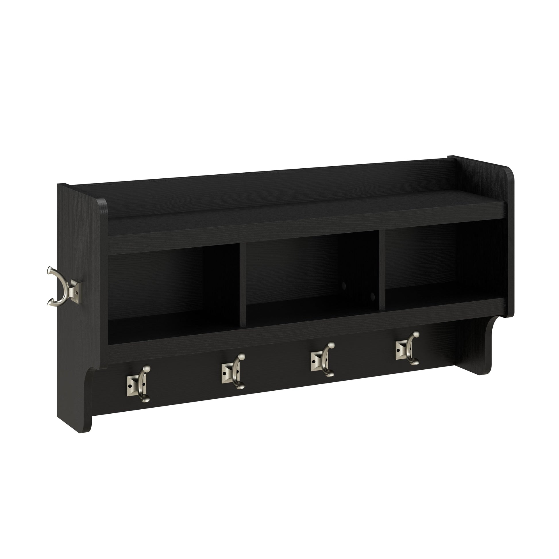 Le porte-manteaux mural avec étagère Bush Furniture Woodland 40W allie un style de transition et une conception pratique pour offrir un rangement idéal pour l'entrée. Rangez vos vêtements d'extérieur et autres articles essentiels du quotidien au même endroit pratique afin que tout soit à portée de main lorsque vous êtes prêt à sortir. L'étagère murale comprend quatre crochets à manteaux en nickel vieilli à l'avant et un sur chaque côté pour accrocher les vestes, les chapeaux, les écharpes et plus encore. Les petits objets comme les gants et les clés peuvent être rangés proprement dans trois espaces de rangement ouverts, tandis que l'étagère supérieure offre un espace pour égayer votre entrée avec des décorations. Les crochets à manteaux supportent jusqu'à 6,8 kg, et la capacité de poids totale de l'étagère murale est de 11,3 kg. Le design de transition du porte-manteaux mural allie des éléments de style contemporain et traditionnel pour compléter une large gamme d'ameublements, tandis que le choix de plusieurs finitions attrayantes permet de trouver facilement le look parfait pour votre espace. Cet organisateur mural d'entrée a été rigoureusement testé pour répondre aux normes de sécurité, de performance et de durabilité de Bush Furniture et est couvert par une garantie fabricant de 3 ans. Découvrez la collection Woodland complète pour compléter l'entrée, le dégagement ou le hall d'entrée de votre maison avec style.