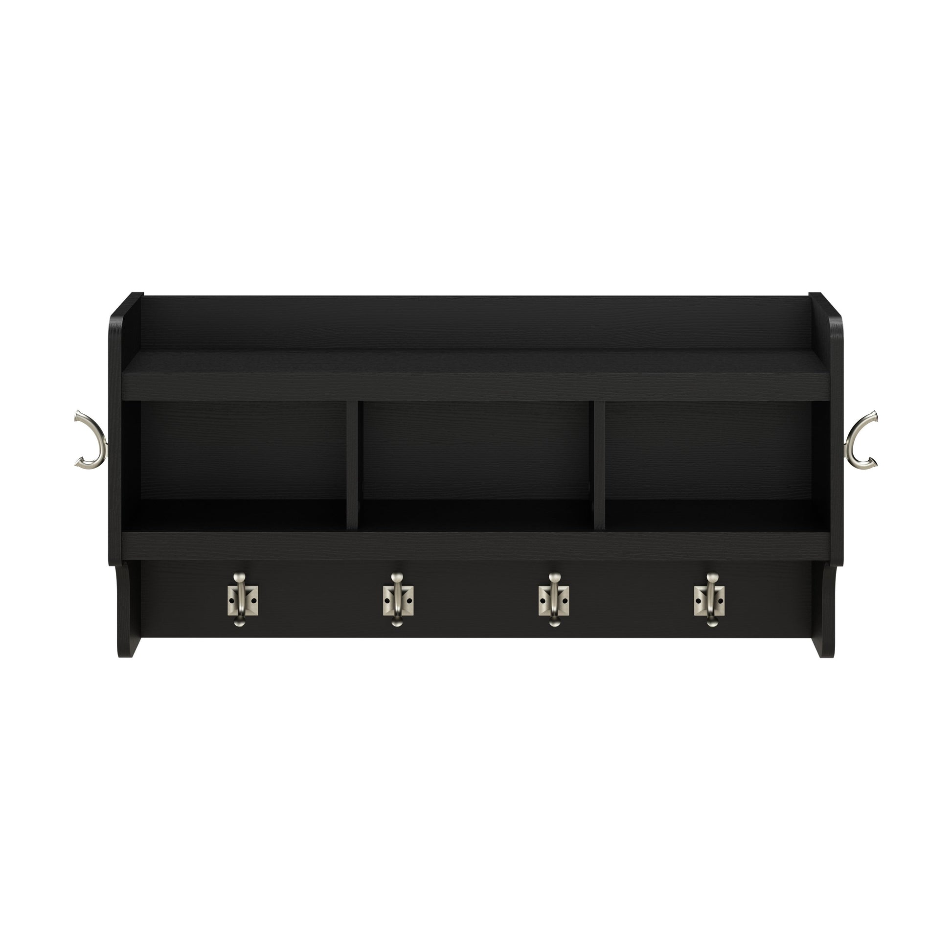 La tablette murale comprend quatre crochets à manteau à double branche à l'avant et un sur chaque côté pour accrocher des vestes, des chapeaux, des écharpes et plus encore.