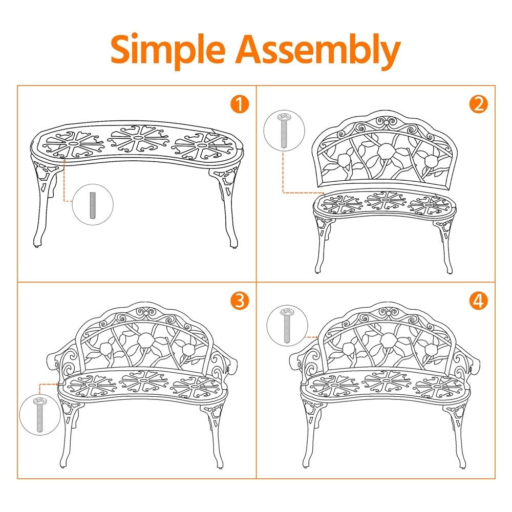 Safe and User-Friendly: With a weight capacity of 227 kg/ 500 lb, this outdoor metal bench is sturdy and reliable. The edge-free design ensures safe sitting, with all possible sharp edges rounded for user comfort.
